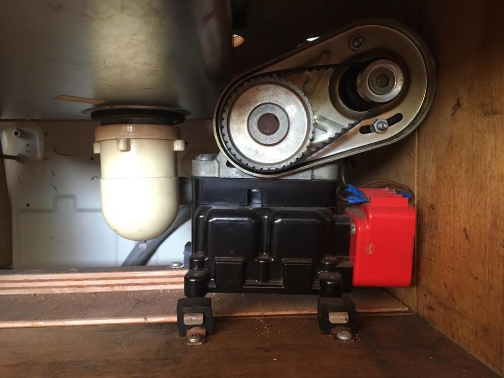 Zudem hätte ich noch eine weitere Frage. Unter dem Spülbecken ist ein kleiner Elektromotor, der -nehme ich an - das Wasser aus dem Vorratsbehälter