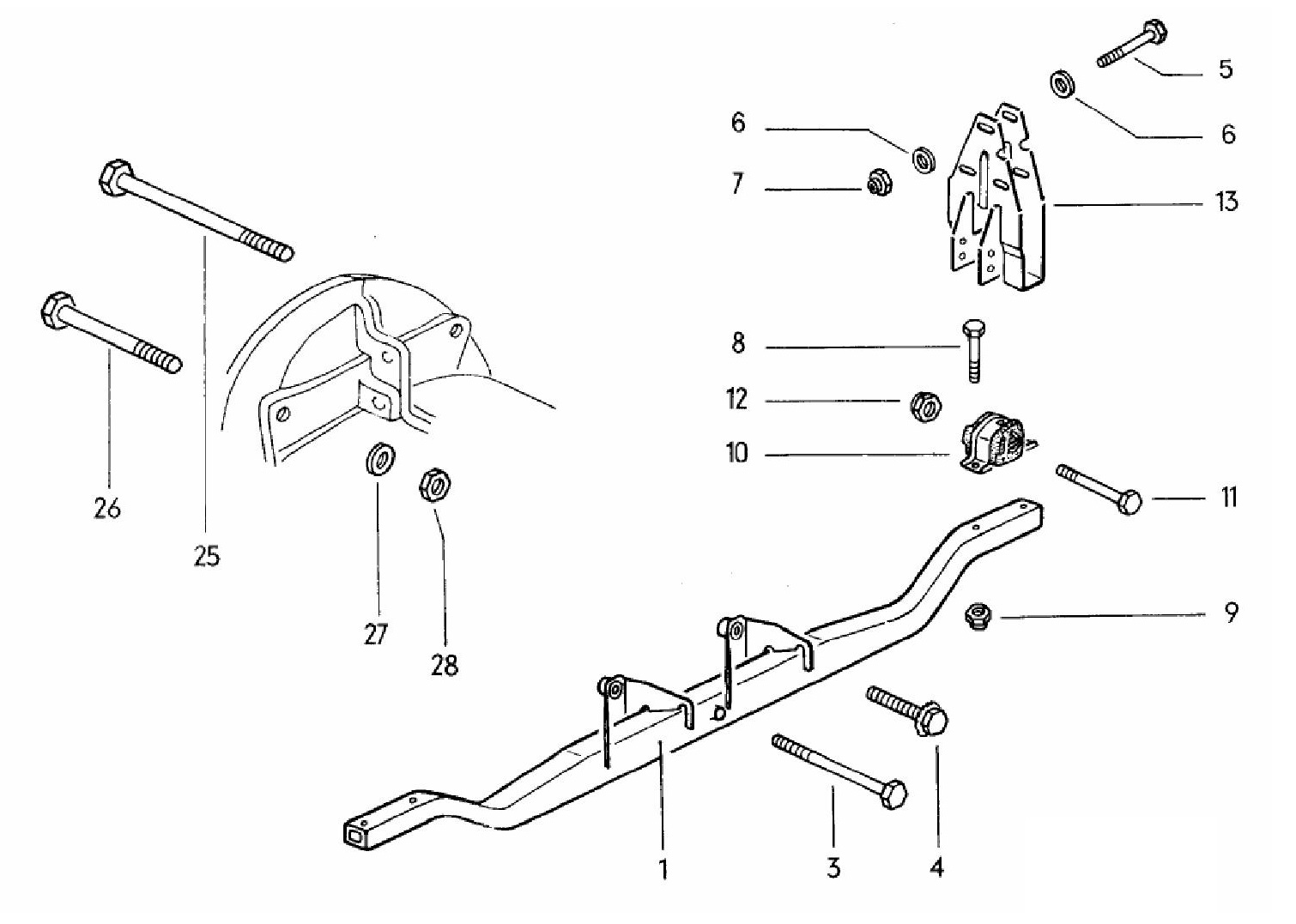 (10) ist das jeweils rechts und links eingesetzte Gummilager, der Motorträger wird von unten gegengesetzt und verschraubt. Ich wüsste jetzt gar nicht, wie Du an Deinem alten Rahmen eine entsprechende Aufnahme für diese Bügel anbringen könntest.