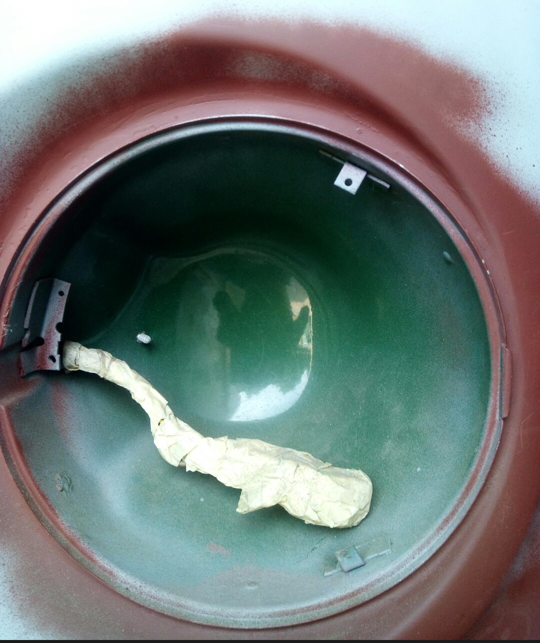 Deutlich erkennbar sind die Winkel zum Befestigen des H4 (oder Salted Beam) Einsatzes. Einige sind noch "verschlossen" von Lack koennen aber problemlos durchstoßen werden. Positionen passen mit den Loechern vom H4-Einsatz ueberein.