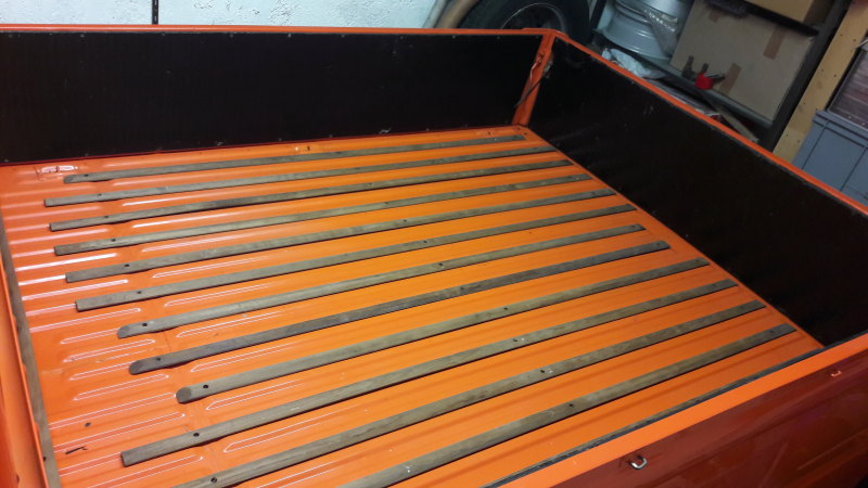 Gestern habe ich mal die Latten für die Ladefläche anprobiert. Die sind halt für nen T3 und deshalb zu kurz.