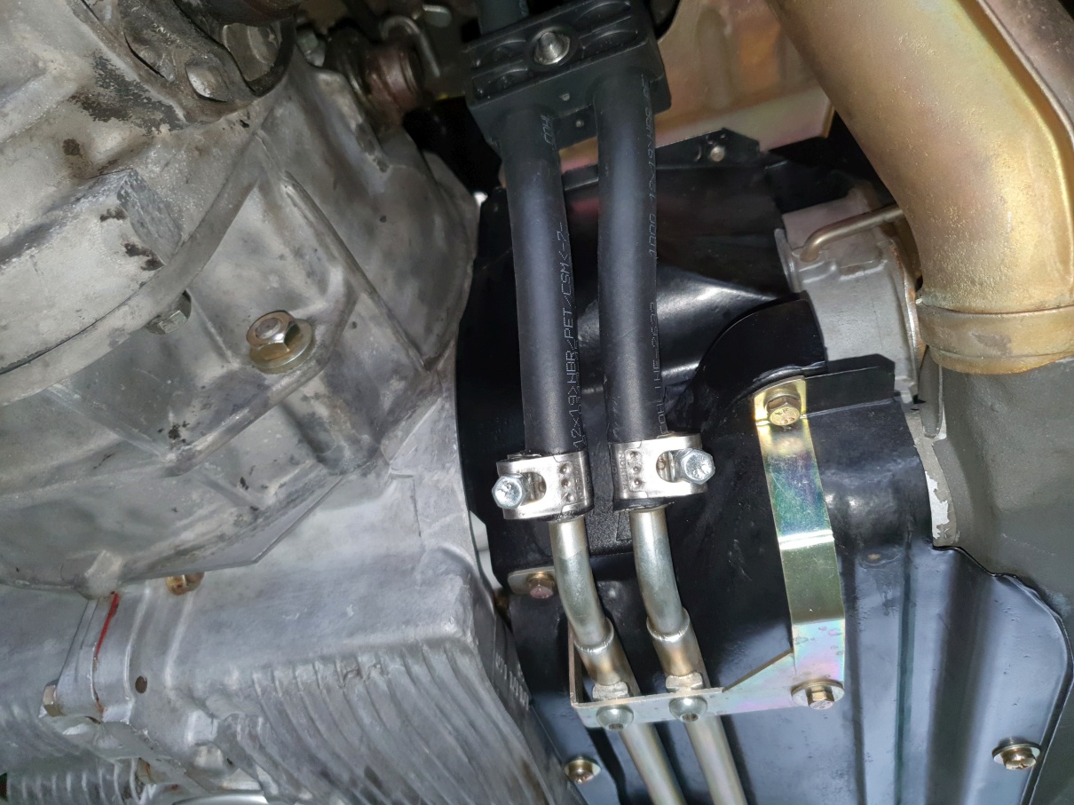 Der Vorbesitzer meines Wagens hatte die Halterung von Matthias schon verbaut, die Schläuche aber etwas rustikal quer unter der Ölwanne nach vorne geführt, also am tiefsten Punkt wenn man aufsetzt. Im Zuge einer Motorrevision habe ich mich auch dieses Themas angenommen und möchte Euch meine Lösung kurz vorstellen.