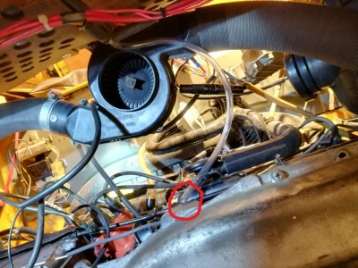 Das Stirnblech ist vom Vergaser gewesen und ich hatte das Loch noch nicht gebohrt.