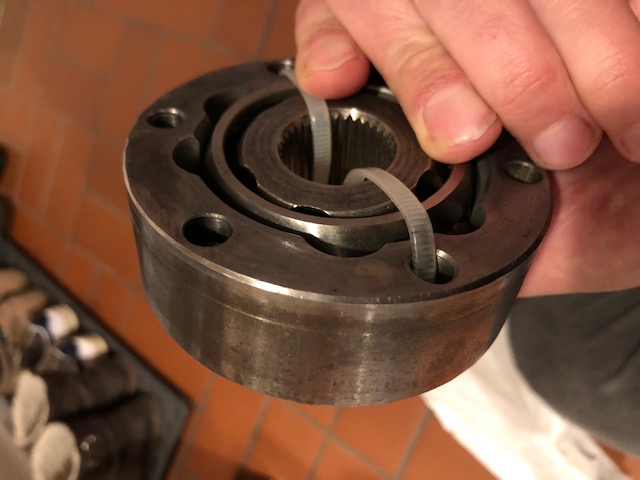 Bei 3 Gelenken war es ja einfach. Die Seite , die auf dem inneren Ring einen Anlauffläche hat, musste an die Wellen-Scheibe (also Richtung Wellenmitte).