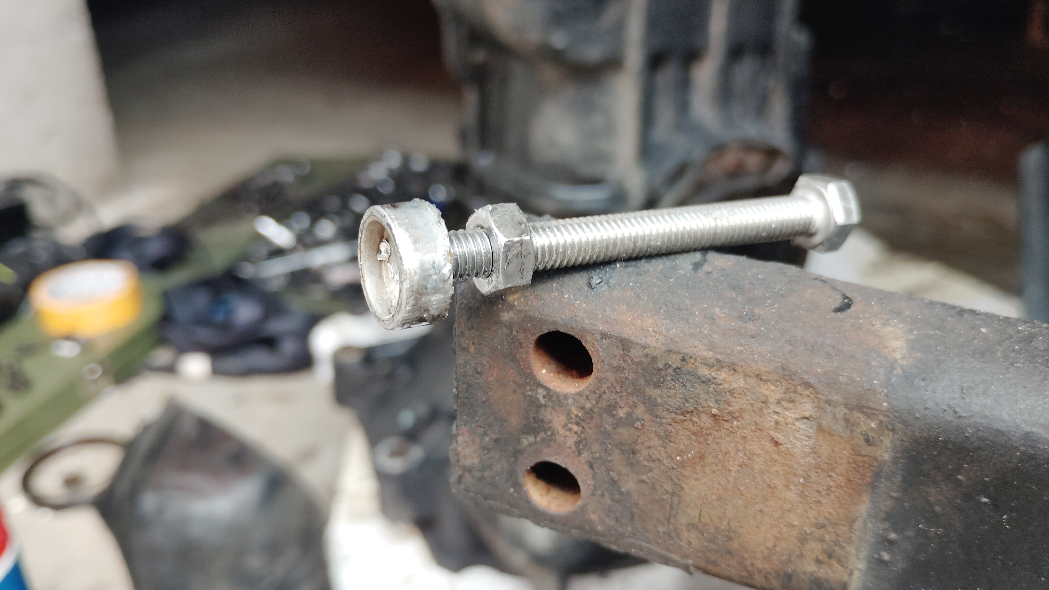 Hier jetzt die original Fotos, die zwischenzeitliche problemlösung die bei Entfernung des lüfterrads noch ganz gut erreichbar war hat gut gehalten.