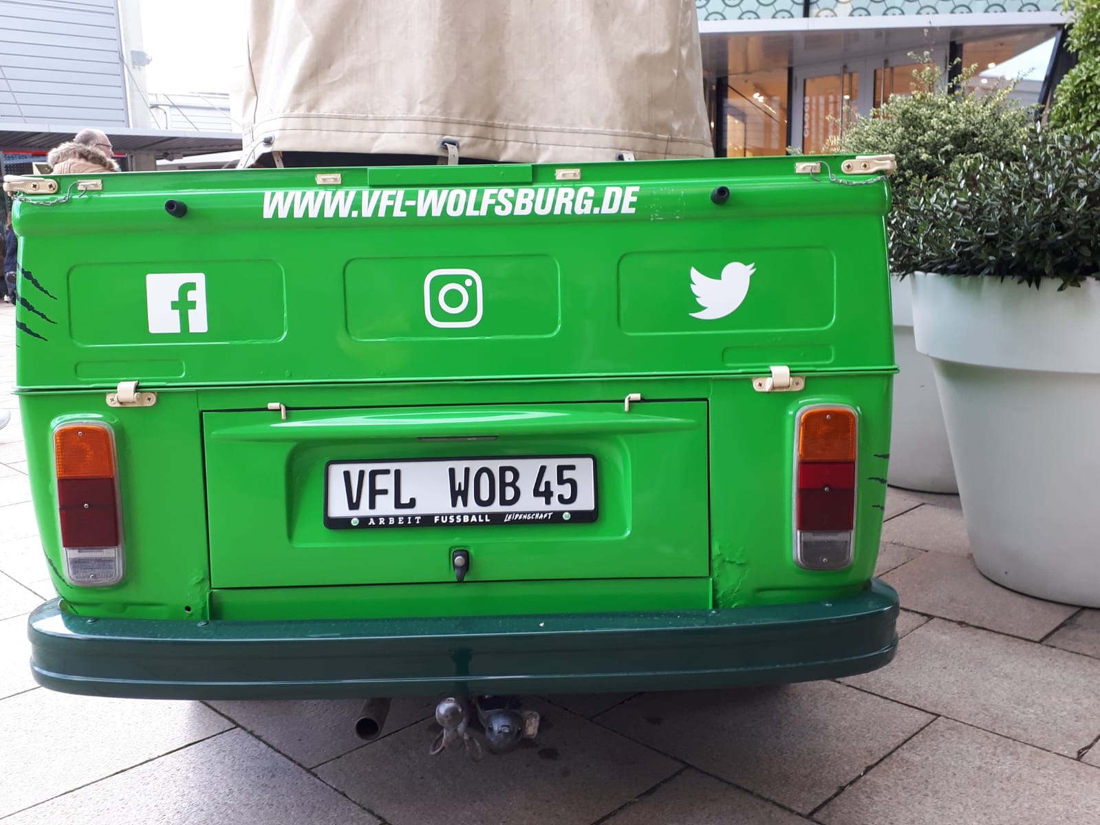 Scheint bei den Fußballclubs „Mode“ zu werden, einen Bulli als Werbeträger zu nehmen.