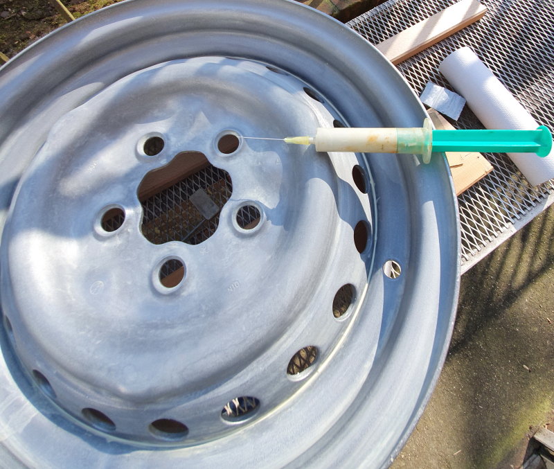 Deshalb habe ich mal die Spritze mit 2k EP Grundierfüller genommen und habe die Naht "aufgespritzt".