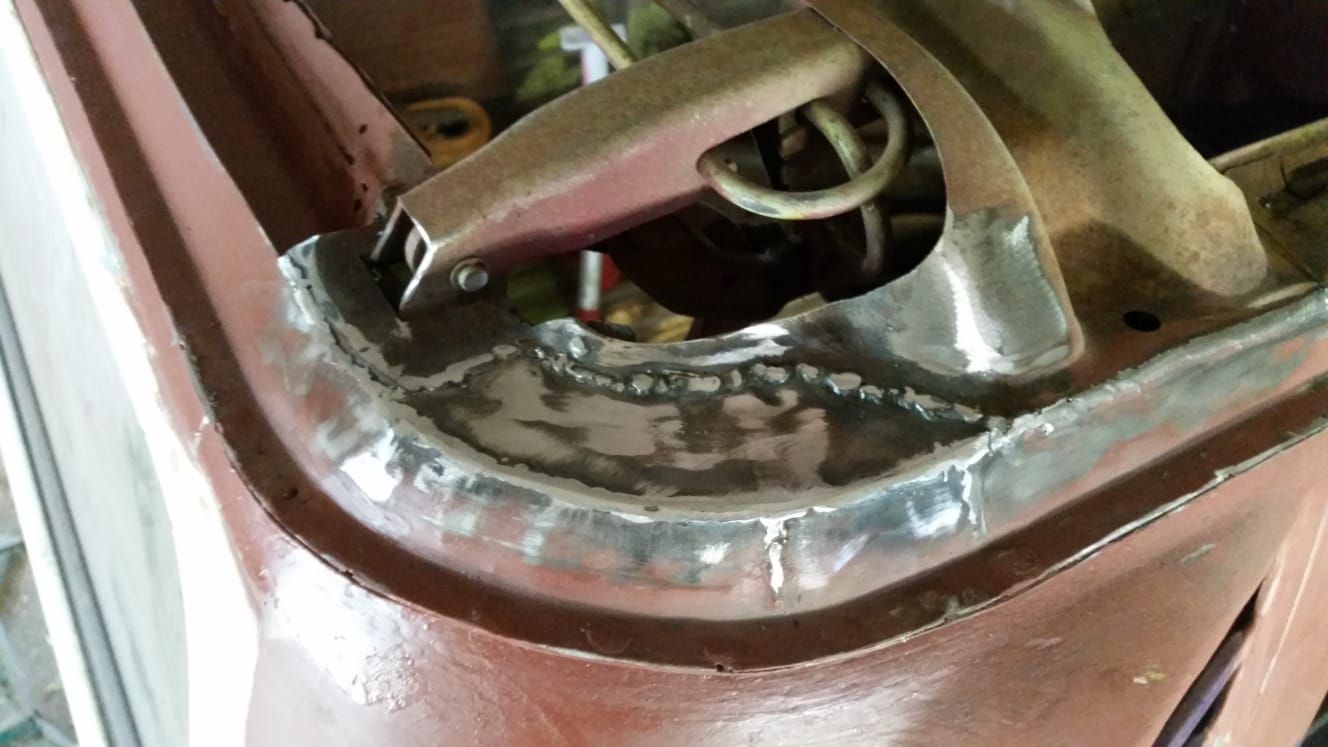 Fakt ist: Der Rahmen hatte sich an der Stelle aufgrund der Haltefeder der Heckklappe schon verzogen, so instabil ist das geworden. Jetzt fehlt noch ein kleines Stück rechts und die Ecke hinten links, dann ist der Rahmen wieder fertig. Mit etwas Glück hält sich die Arbeit links in Grenzen, dort ist der Rahmen ingesamt viel besser in Schuss.