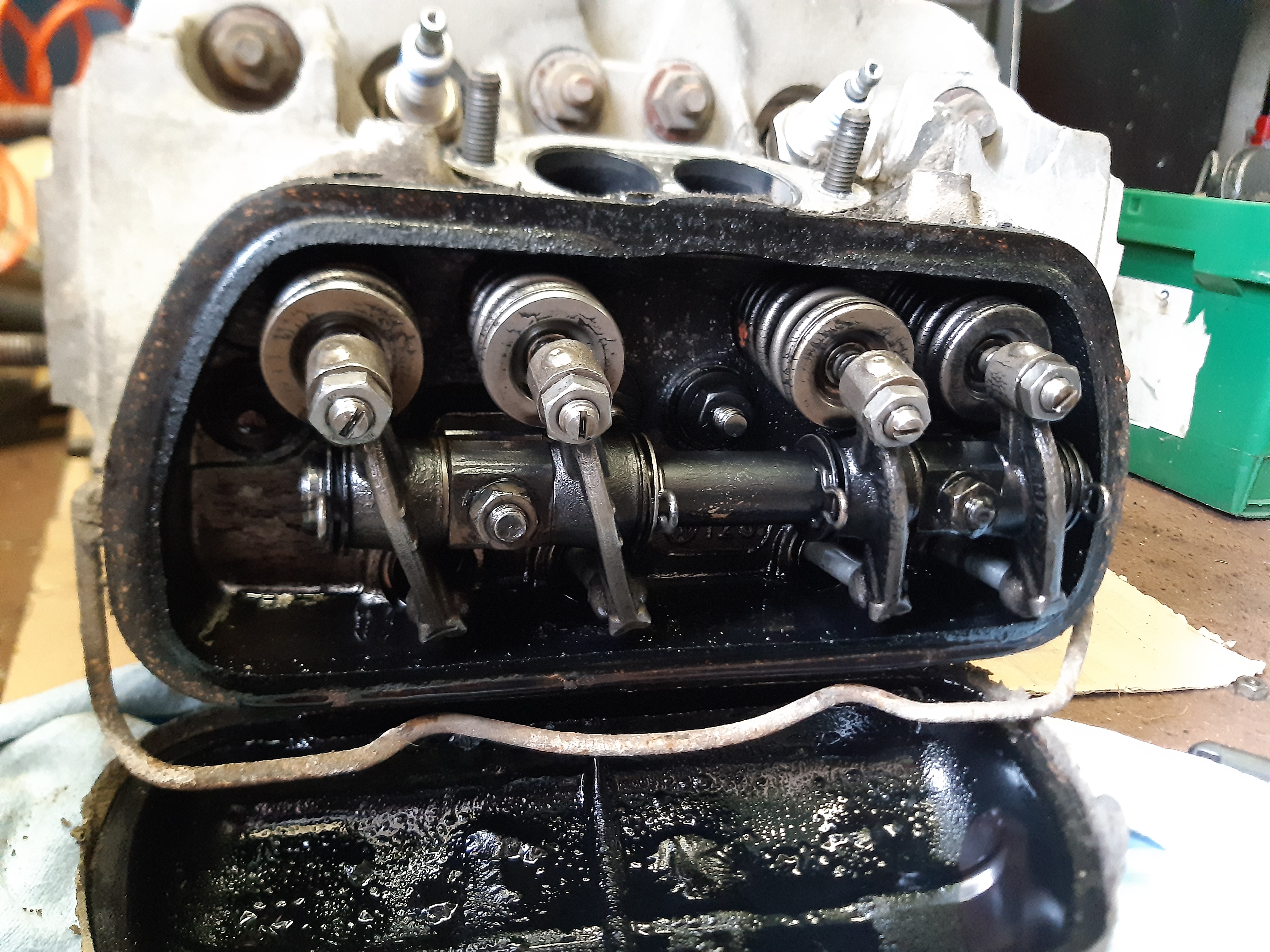 Die vielen Ablagerungen hinter dem Ventildeckel (Ich gehe mal davon aus, dass die andere Seite auch so aussieht) deutet meines Erachstens darauf hin, dass der öfter mal viel zu heiß gelaufen ist und das Öl an den heißen Stellen verkokt ist. Mit dem Ölwechsel scheint man es zudem auch nicht immer so genau genommen zu haben.