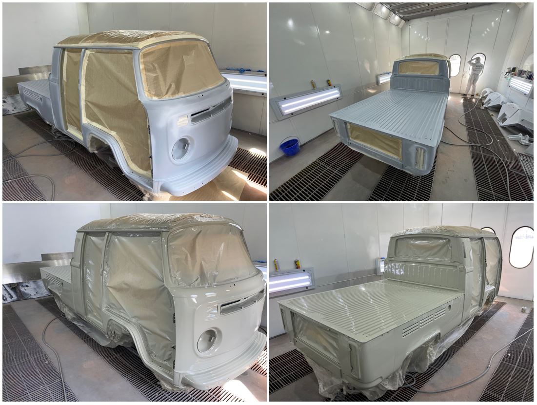 Nach dem Transport zum etwa 20 Km. entfernten Lackierer konnte ich dort tatkräftig mithelfen, resp. der Lackierer musste fast nur noch lackieren.