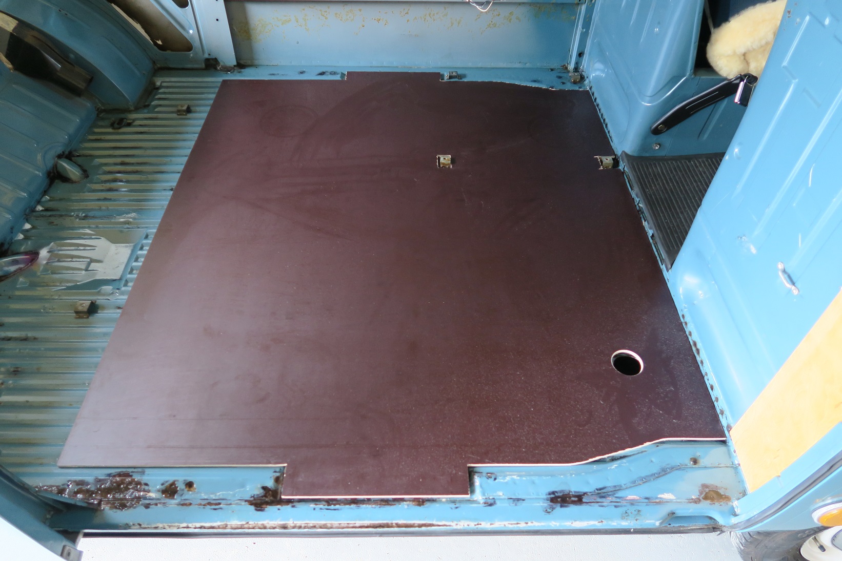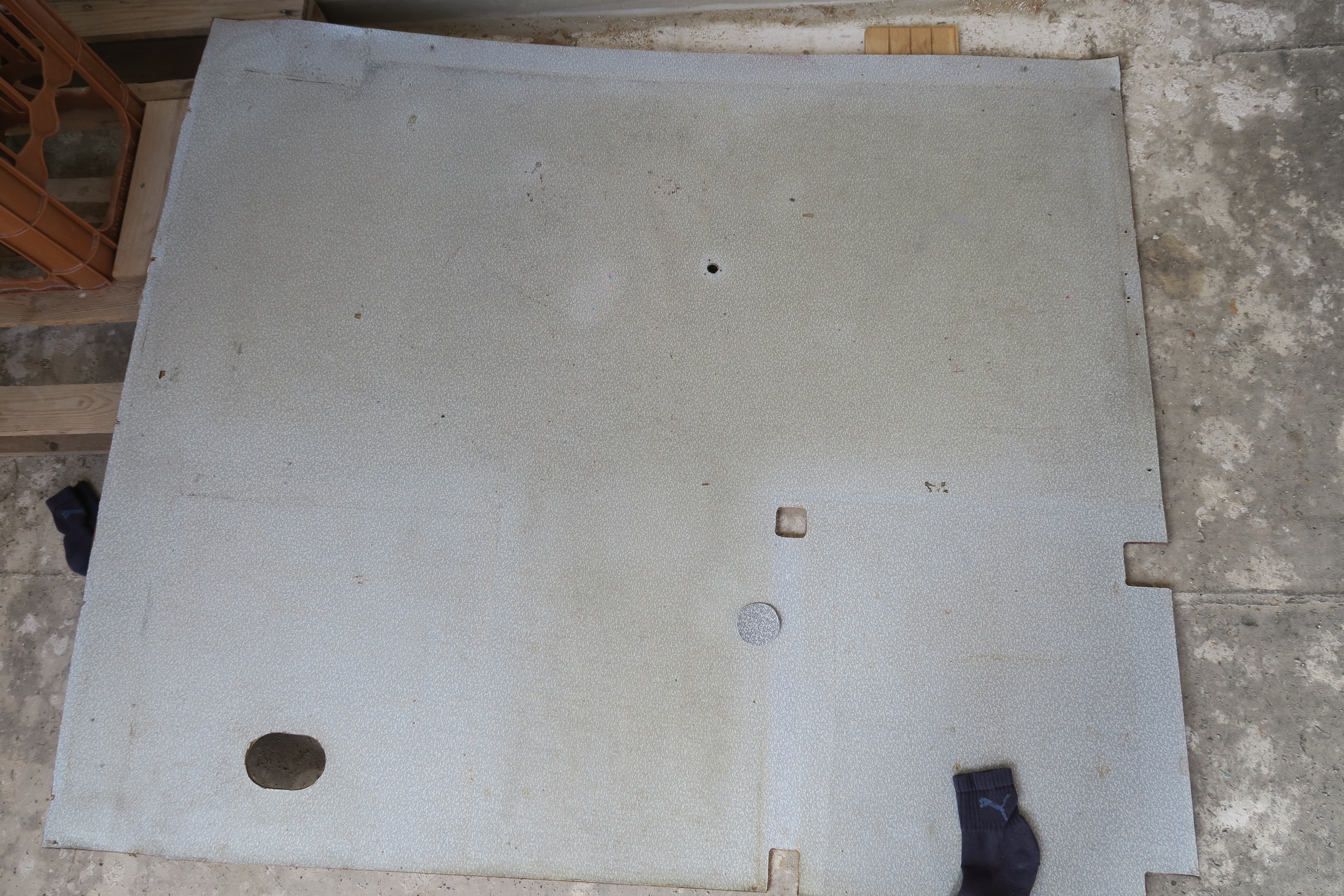 Frisch draufgelegt waren da noch wie Blasen drin, die man auch nicht ausstreichen kann. Und so sieht der alte Boden aus. Im Bus eingebaut sah der nie so schmutzig aus