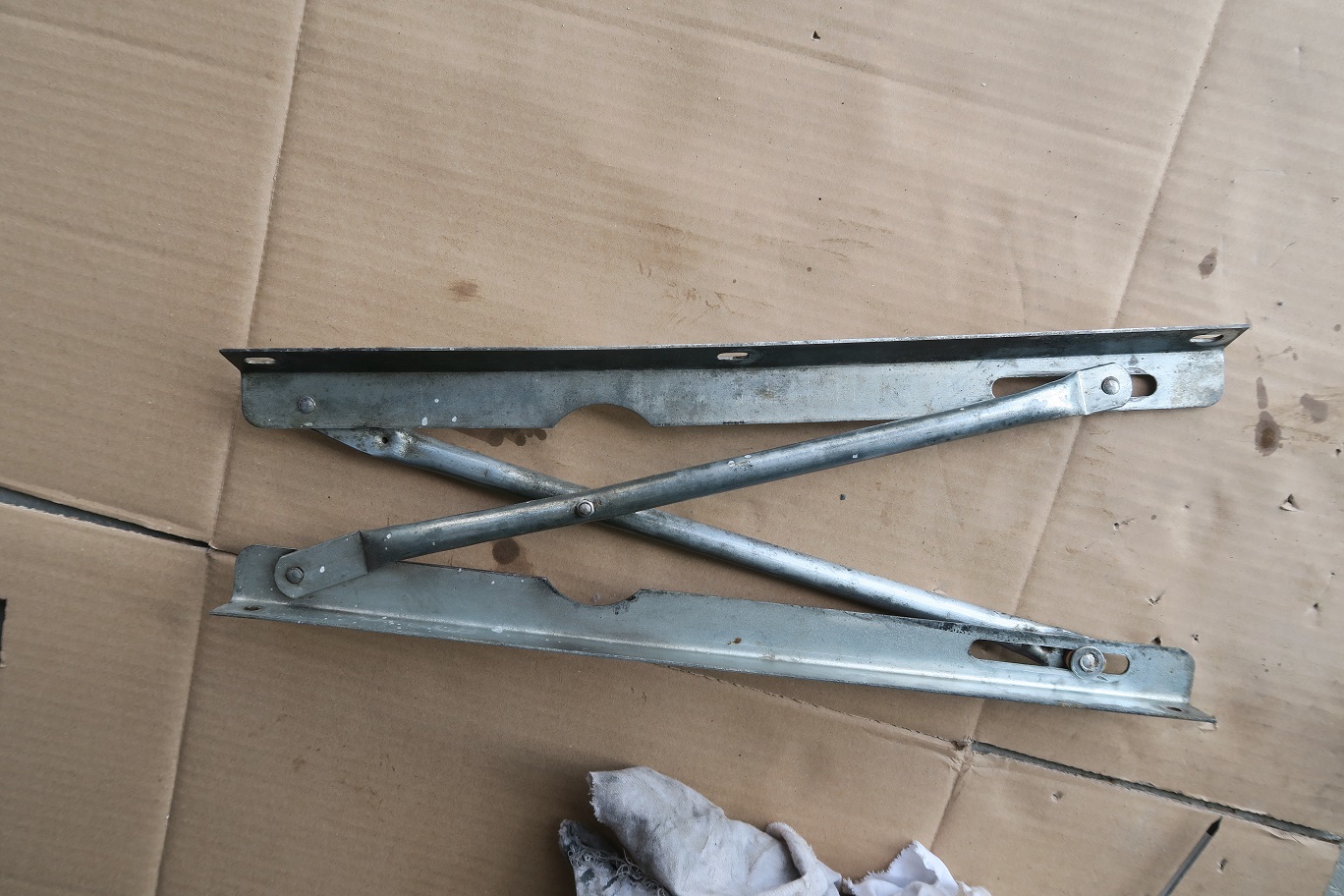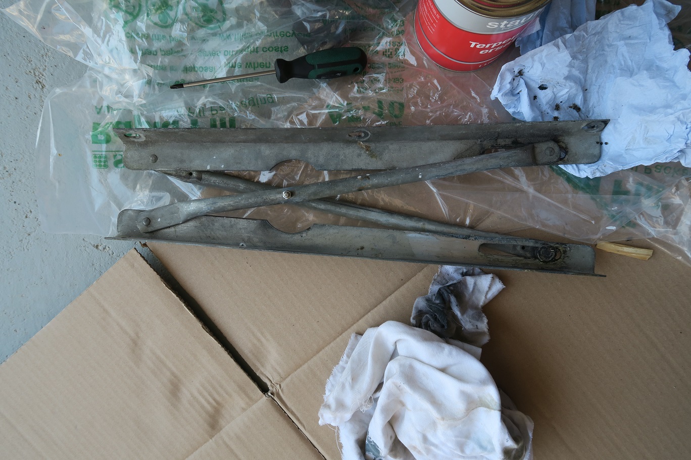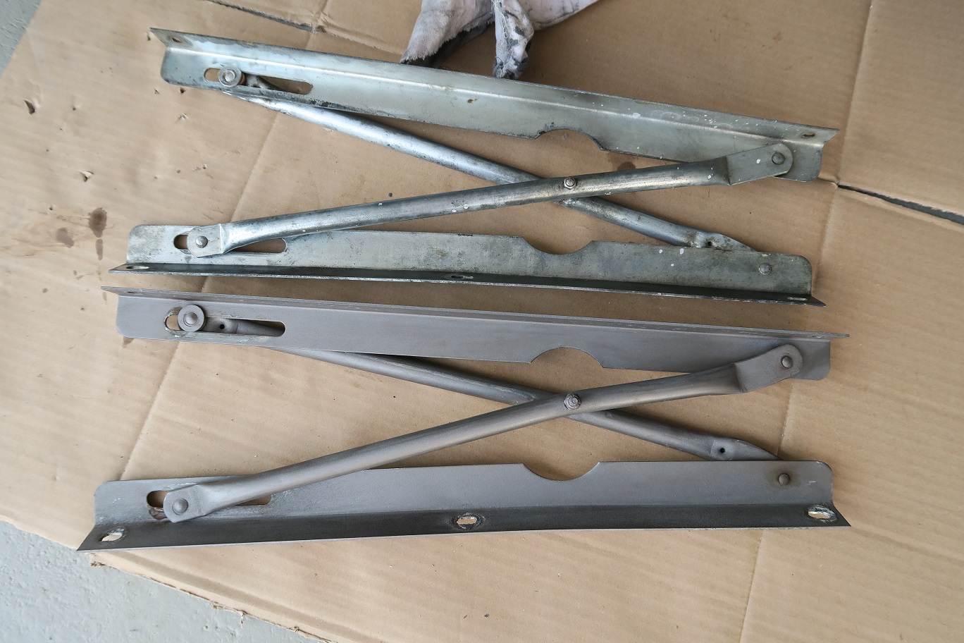 Vor dem Putzen: Nach dem Putzen: Alte Schere noch montiert. oben bereits gelöst: Beide Scheren im Vergleich. Man erkennt die verbogenen Rohre der demontierten Version.