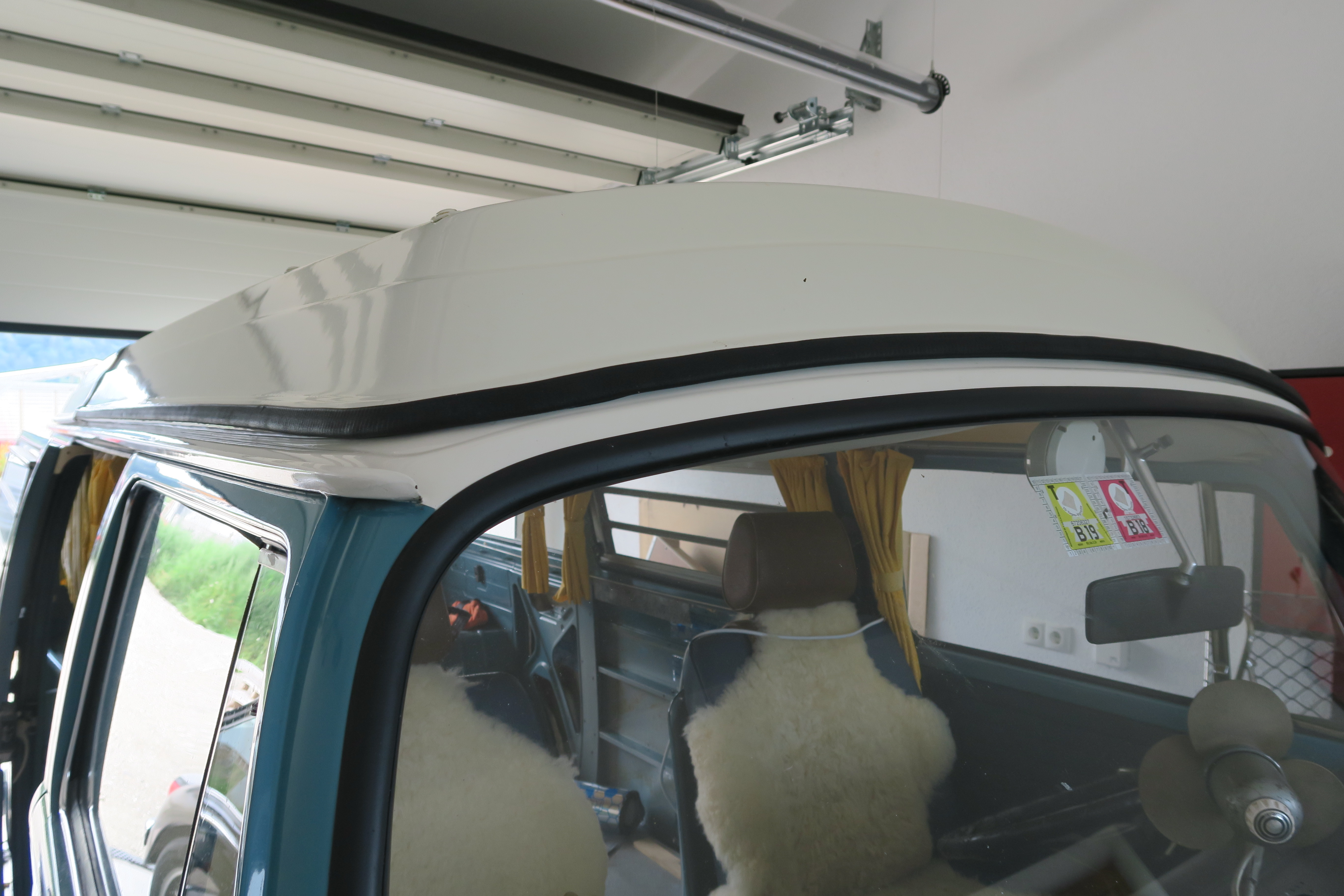 Na auf jeden Fall sitzt das Hubdach sauber (fast ein wenig zu eng): Die alte Dichtung hab ich wieder geklebt und montiert. Dann hab ich mich an die Dämmung gemacht.