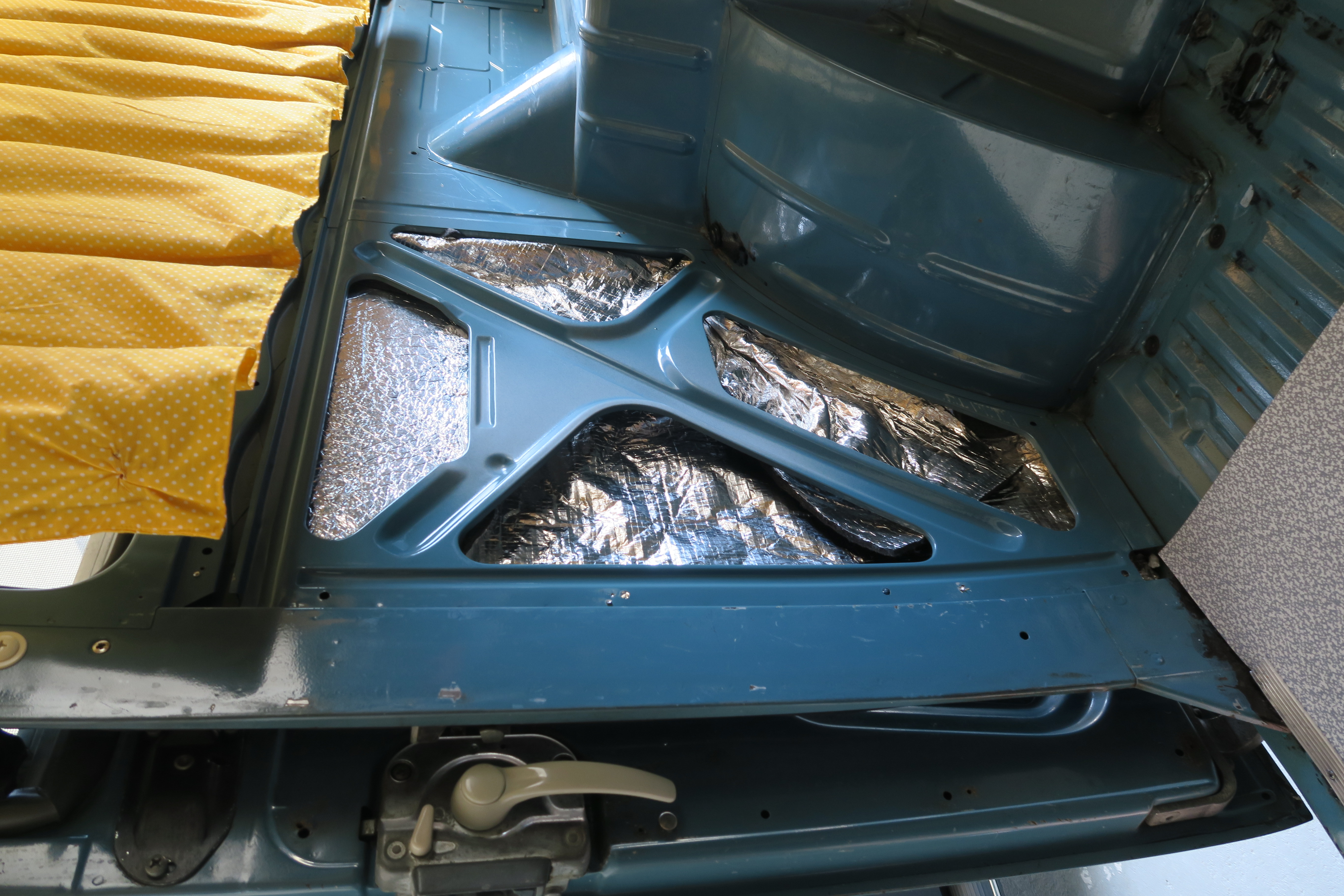 Ich hab die Gummistopfen für die Löcher im Boden vorbehandelt. Noch ein wenig Hohlraumkonservierung warm machen: Und rein in die Aufnahmen für die Sitze. Hoffentlich legt sich der neue Boden noch schön an.