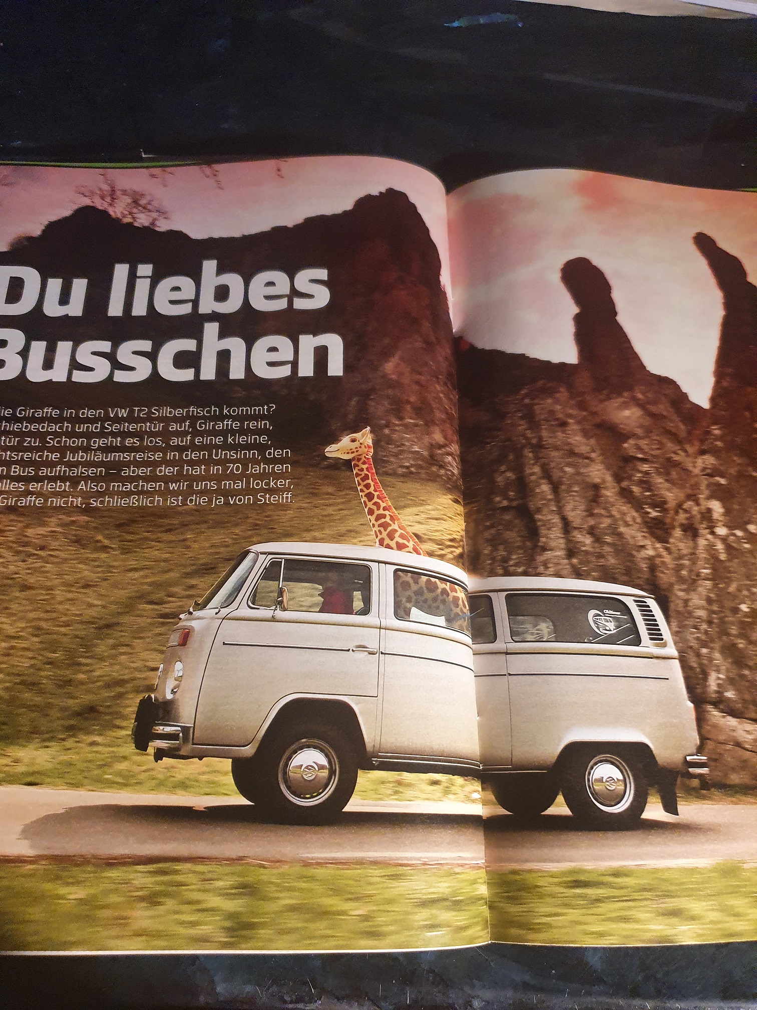 Nach kurzer Suchaktion in meinem Archiv konnte ich das fast gleiche Foto aber fast 50 Jahre früher in der Gute Fahrt Ausgabe 11/1971 wieder finden. Es wurde damals der neue Bus also der Zwitter mit der 66PS Maschine getestet Originaltext " es ist eine wahre Freude mit dem neuen Bus zu fahren, denn so schnell und leise war er noch nie" Ein Käfer 1303 S konnte ihm nicht mehr davon fahren
