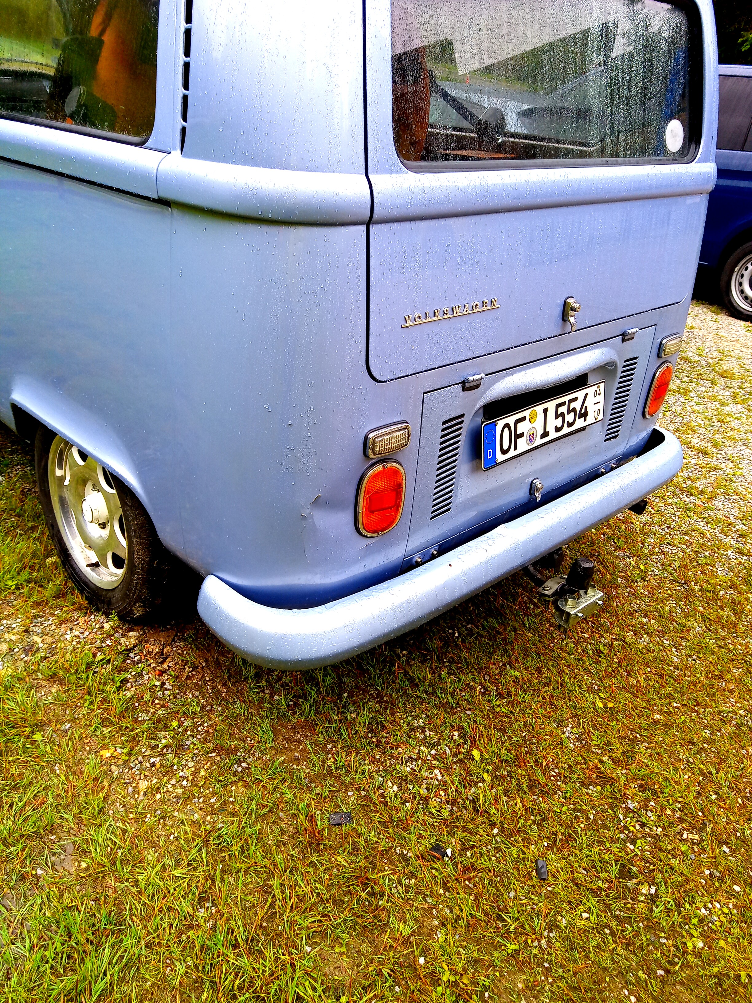Letzter Tag im Urlaub in Österreich, ich komme klatschnass vom biken zurück zum Apartment, sehe meinen Bulli von hinten und überlege wo der Fehler im Bild ist.