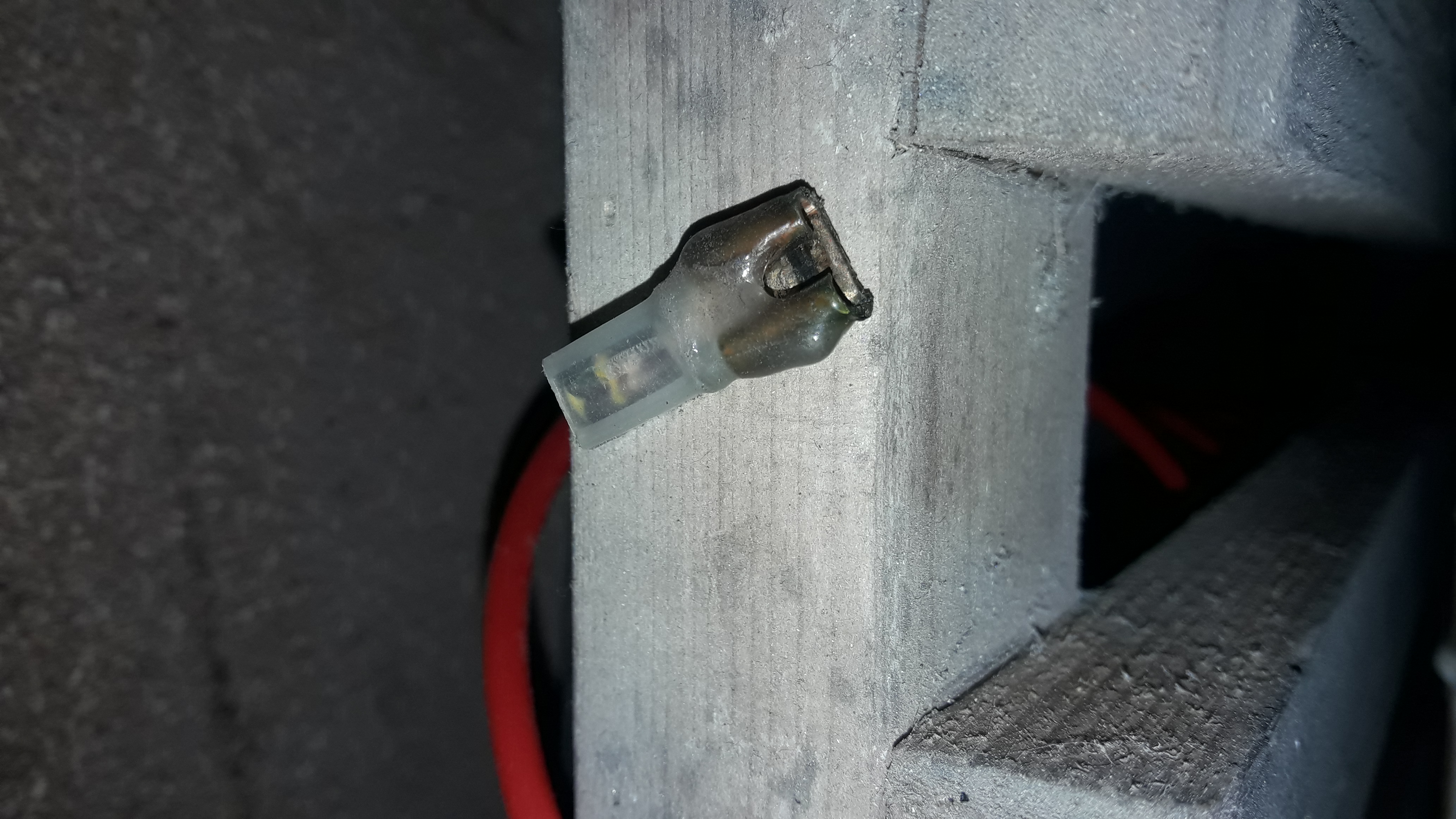 Die Flachsteckhülse des Abgangs zum linken Abblendlicht war vermutlich geweitet und hatte demnach schlechten Kontakt. Die Überhitzung hat dazu geführt, dass sogar die Isoliertülle schon geschmolzen ist.