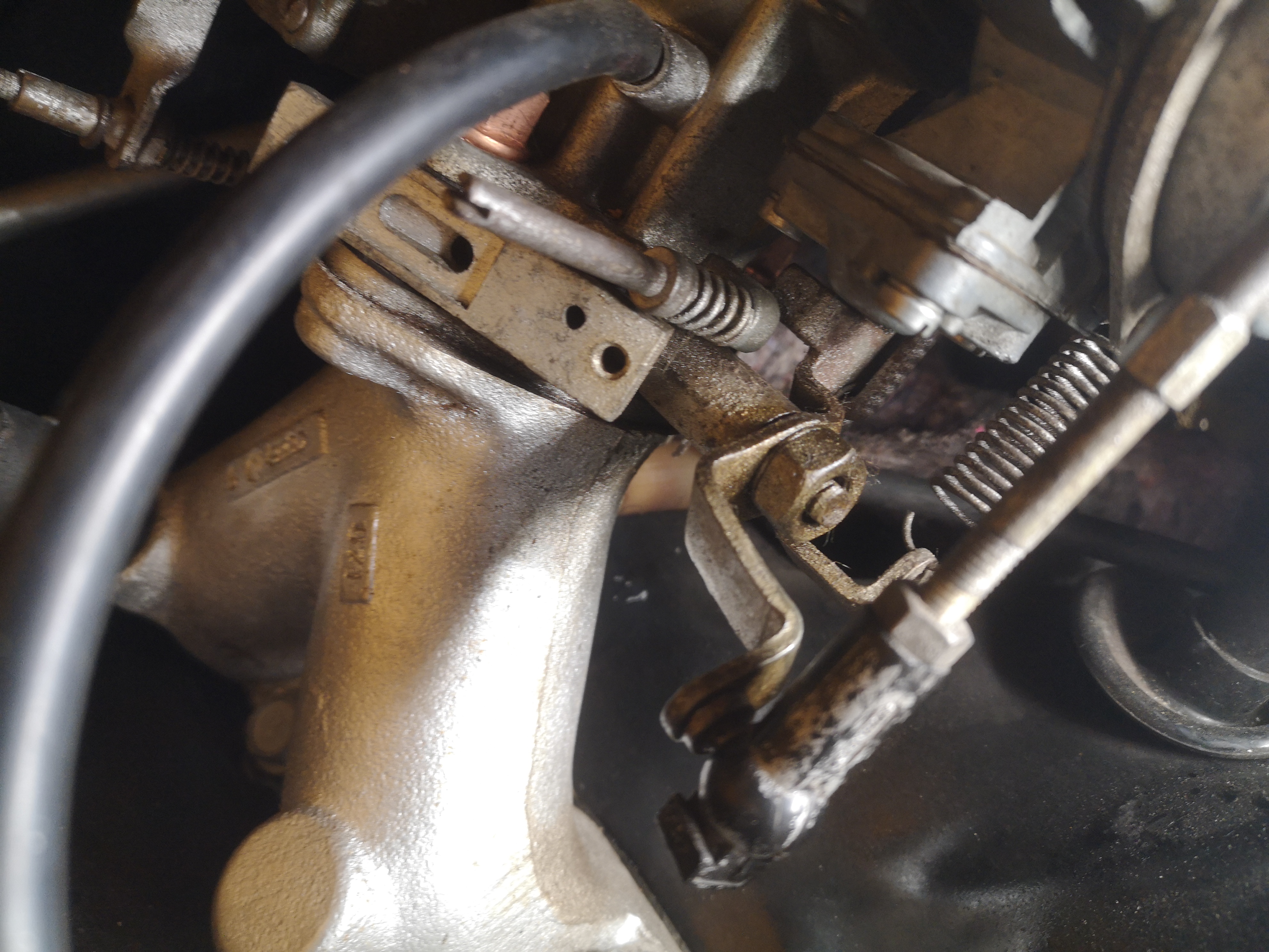 Mein Schrauber hat noch festgestellt, das irgendwas am Vergaser gebastelt wurde. Ich versuche das mal zu erklären anhand seiner Aussagen, ich selbst habe keine Ahnung davon. Die Schraube auf dem Foto (gelber Pfeil) ist wohl für die Einstellung des Standgas zuständig. Die lässt sich aber nicht soweit reindrehen, dass sie irgendwas berührt am Ende. Standgas wurde wohl woanders eingestellt, was man aber eigentlich nicht macht? Irgendwas wurde jedenfalls gefuscht laut seiner Aussage. Er meinte, mit einem neuen "Gestänge", also das was rot eingekreist ist, können man das wieder in den richtigen Zustand bringen?