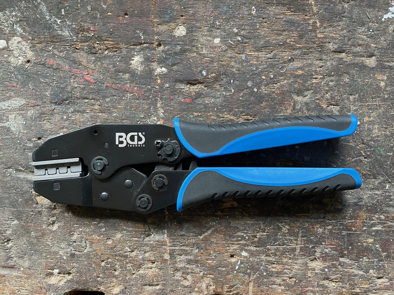 Eine vernünftige Chrimpzange braucht es dann auch noch. Ich hatte schon eine BGS-Zange mit 5 Einsätzen, aber nicht den für diese kleinen Chrimpkontakte. Deshalb habe ich mir diesen Einsatz bestellt und der hat auch gepasst: Damit habe ich mir ein ausreichend langes Kabel zwischen dem Controller und der Anzeige zusammengebaut. Bevor ich das Kabel unter den Wagenboden verlege, will ich noch vergleichen, ob die Anzeige beim 7 m langen Kabel das selbe anzeigt wie beim originalen 1,50 m langen Kabel. Das originale Kabel habe ich ja nicht zerschnippeln wollen.