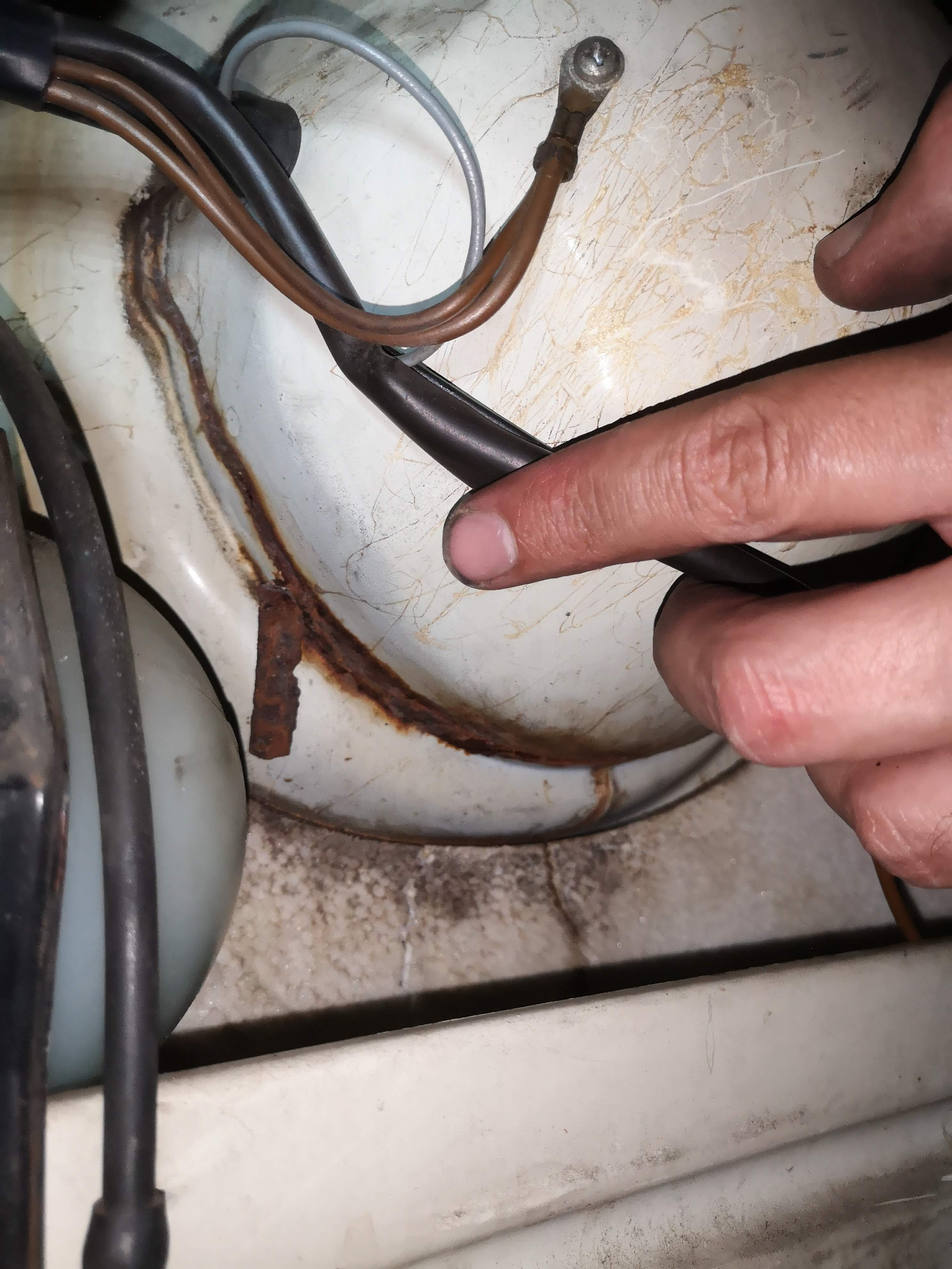 Mit einem Dreikant-Schaber hatte ich so gut wie möglich den Rost entfernt und anschließend 2 x Säureprimer aufgetragen.