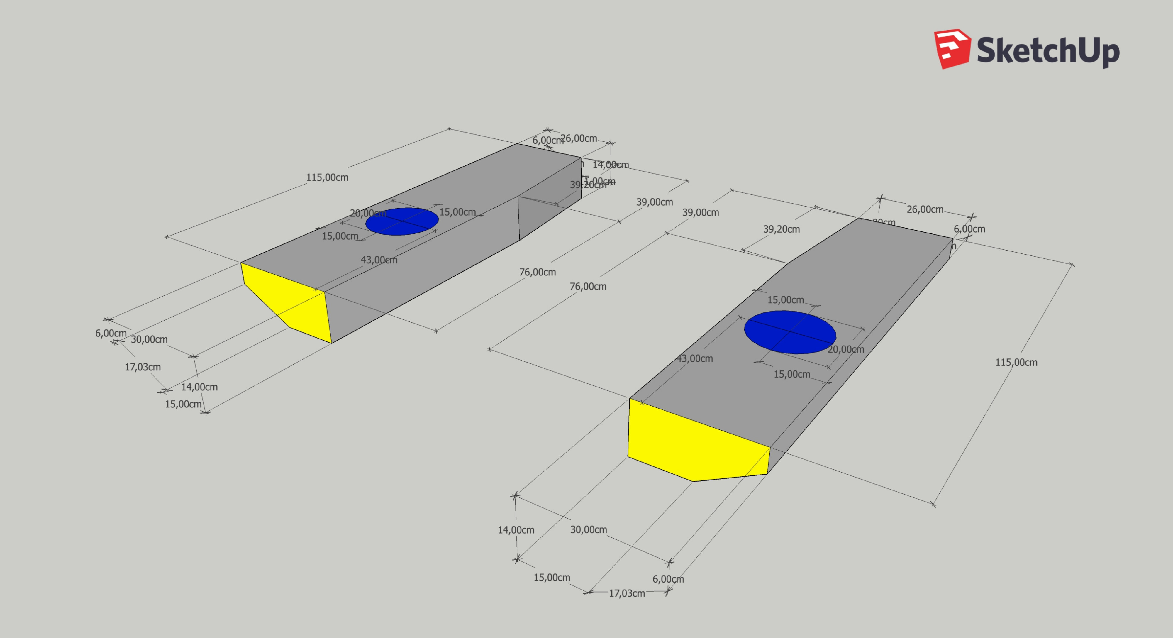 Leider hatte er keine genauen Maße mehr und ich wollte doch auch noch ein paar cm Bodenfreiheit für noch mehr Wasser opfern. Falls jemand was ähnliches vor hat, die Tanks fassen jeweils 39 Liter Wasser, gehe nur 3 Zentimeter tiefer als der Längsholm und laufen nach Außen hin schräg nach oben, damit es seitlich nicht so weit nach unten steht.