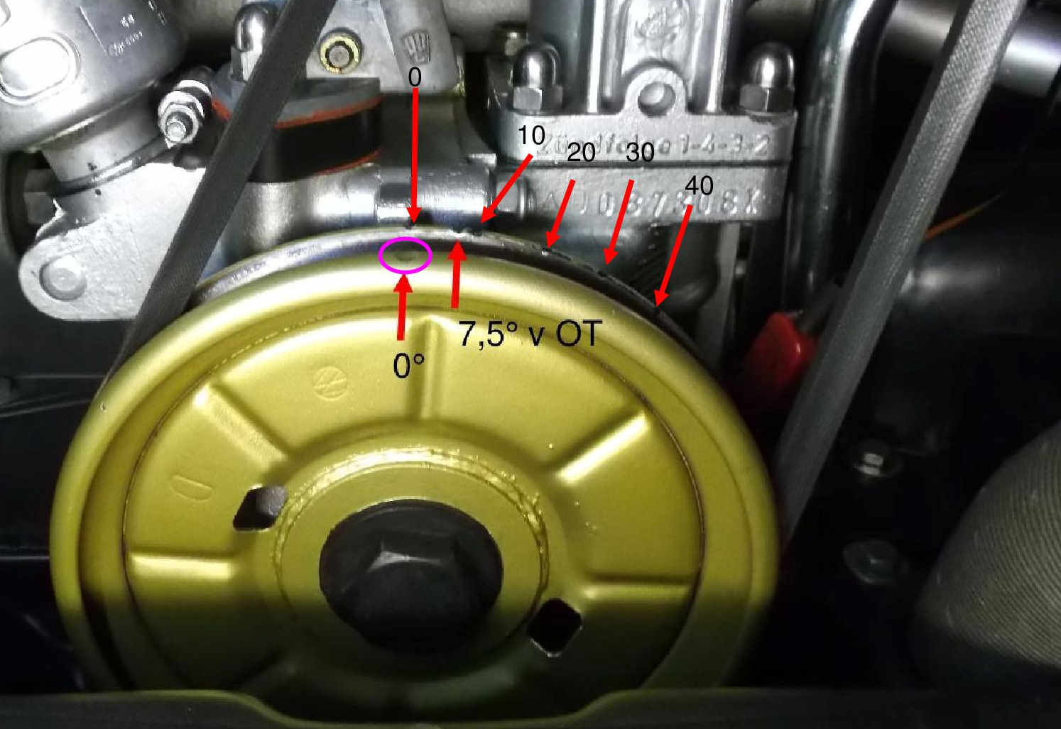 BTW: Die eingekreiste Markierung sollte auf jeder Riemenscheibe eingeprägt sein, so dass man sich mit OT immer sicher sein kann.
