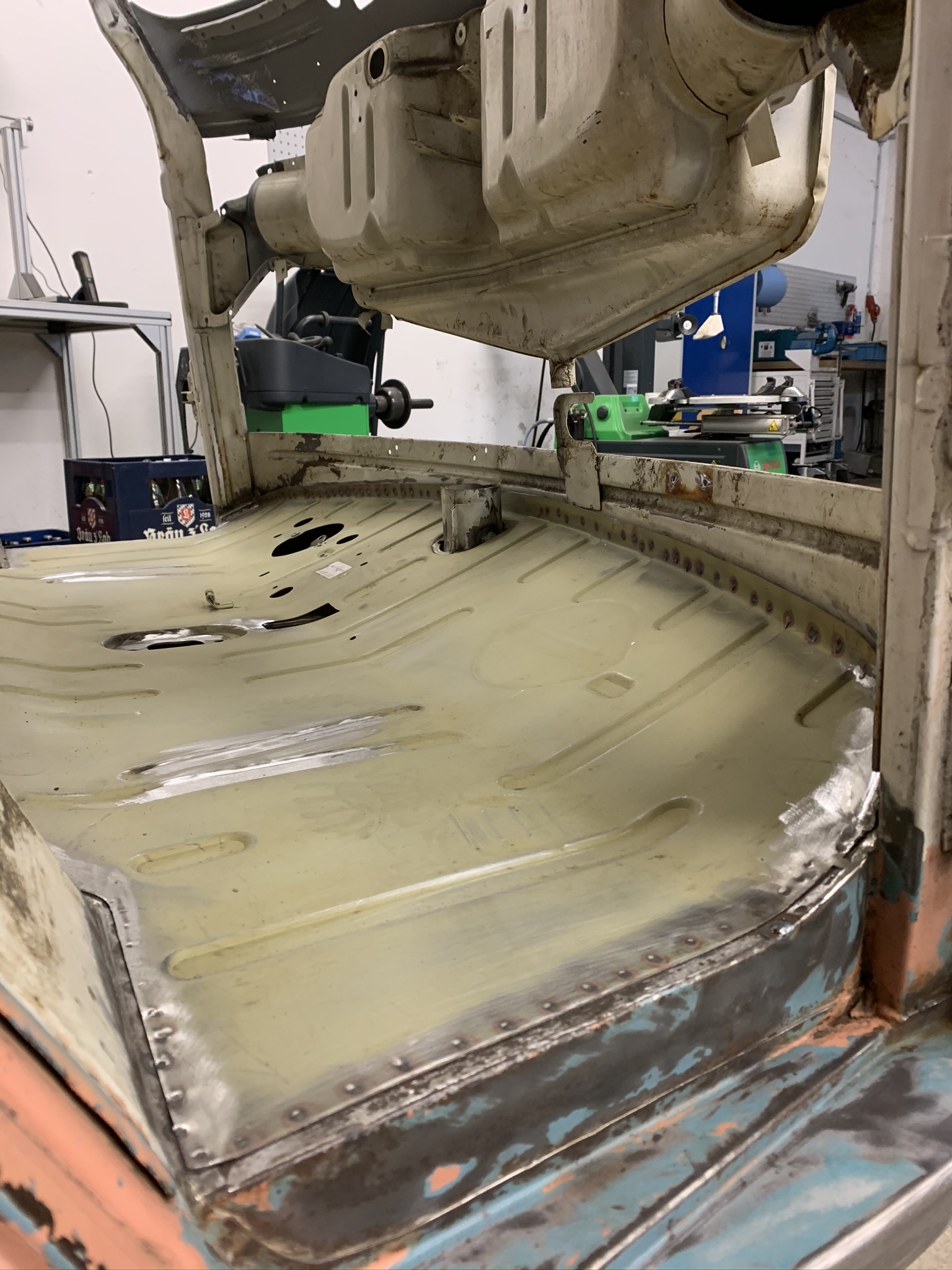Der Bus kam anschließend zum Tauchbadentlacken + KTL, da benutze ich davor keinen Schweißprimer.