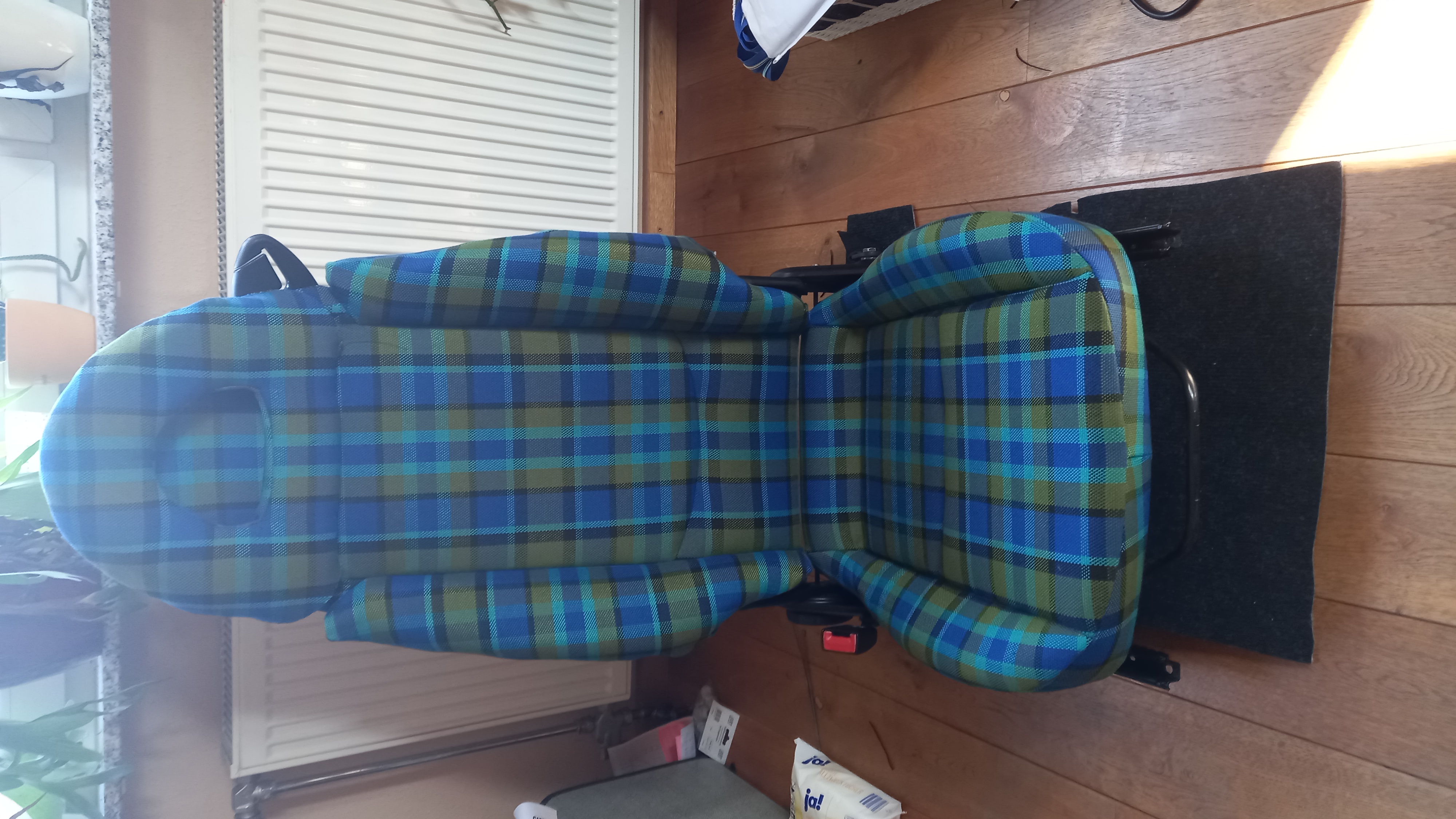 Die Sitzbank hinten ist fast fertig gebaut, jetzt habe ich größere Mengen Stoff und Schaumstoff bestellt und schon ein paar Abende genäht. Die Vordersitze sind fast fertig, und das war ja der schwierigste Part.