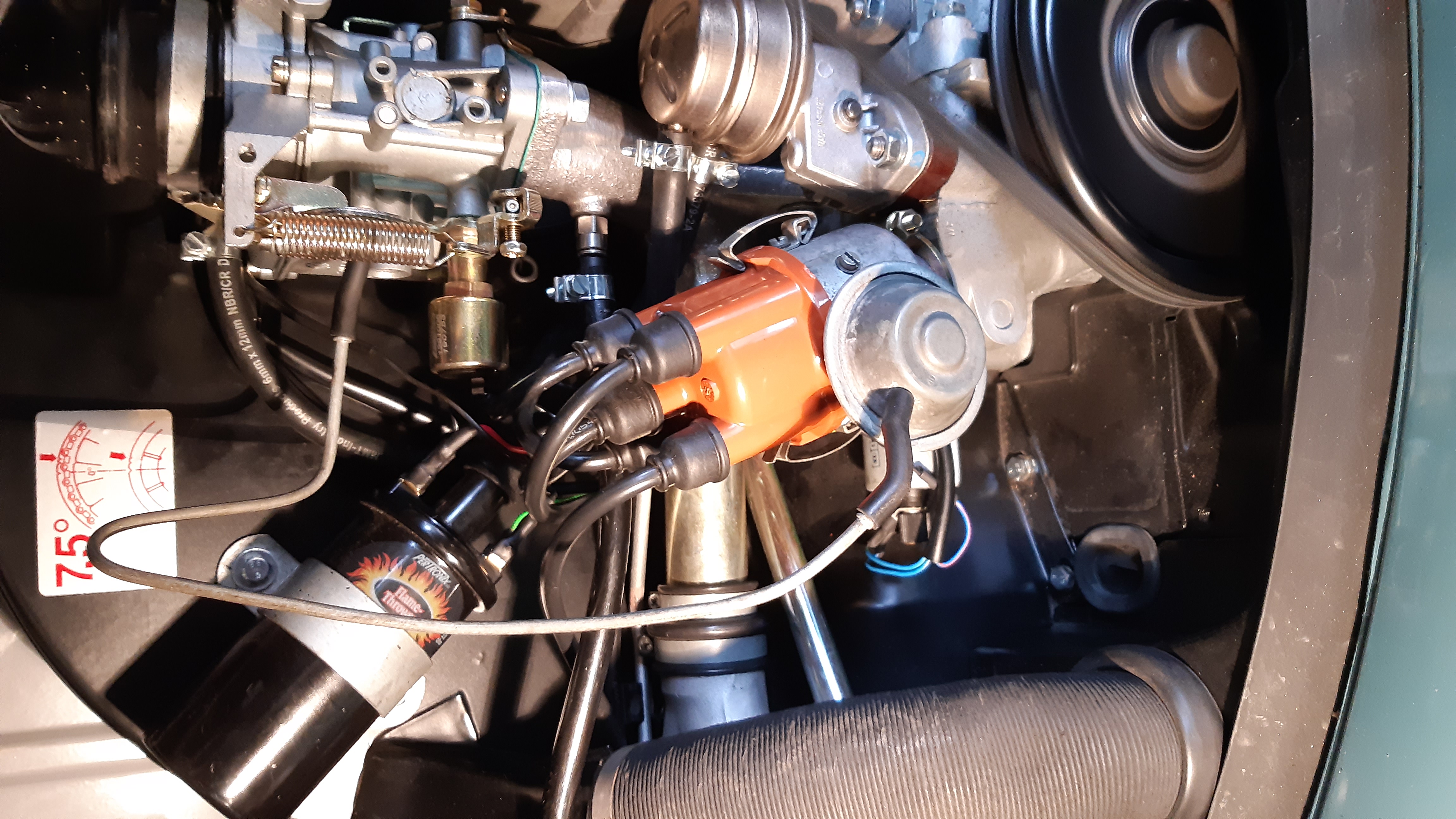 Kleine Ausfahrt zur Selbstwäscheanlage, und komischerweise lief er danach nicht mehr so schön, hat sich beim Gasgeben immer verschluckt. Erster Tipp war Falschluft, aber da habe ich nichts gefunden. Also Verteilerkappe und Finger getauscht, obwohl die eigentlich noch gut aussahen. Danach war wieder gut. Jetzt heute noch eine kleine Undichtigkeit beseitigen und dann geht's dran den Tausch des Interieurs vorzubereiten.