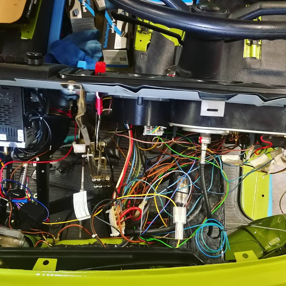 also den neuen Kabelbaum hab ich verlegt und was an Beleuchtung und Scheibenwischer (neuer Motor mußte leider sein und die Reproqualität der Wischerwellen ist was für den A...) funktionieren soll funktioniert auch, Motor und Getriebe sind noch raus, aber ich bin hoffnungsfroh auch da alles richtig angeschlossen zu haben.