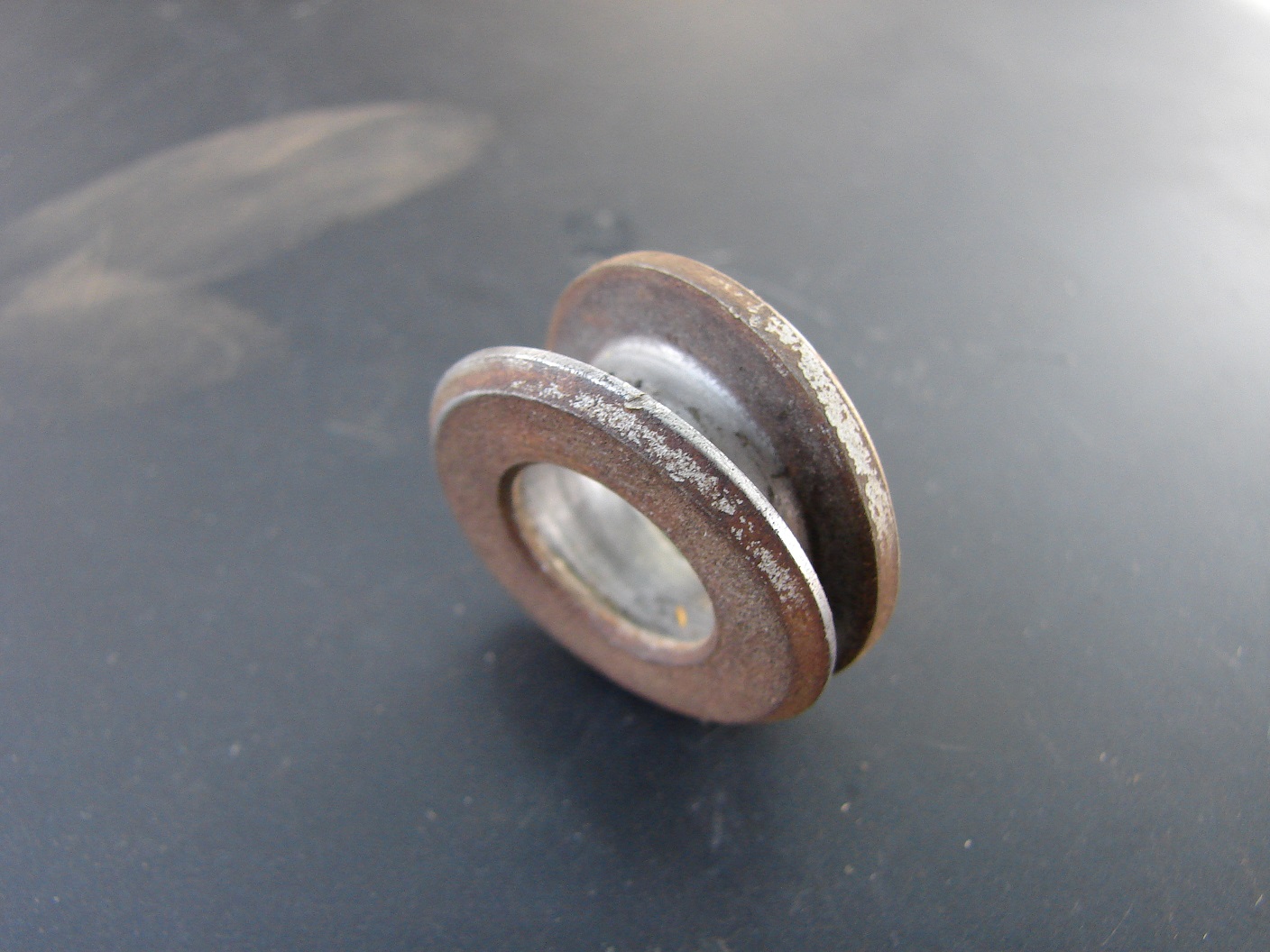 Mein Problem konnte ich inzwischen trotzdem lösen. Der Hinweis von Thomas hat es bei mir klingeln lassen. Ein Bekannter, den ich wegen Schrottplatzadressen angerufen hatte, erwähnte in einem Nebensatz, dass er eine kleine Drehmaschine hätte. Und sogar eine richtig gute mit sehr kleinen Innenausdrehmeißeln für die Ringnut. Nach drei Stunden war das Ding fertig. Das Kugellager konnte ich wiederverwenden, läuft auch nach 44 Jahren noch einwandfrei. Allerdings habe ich die Lauffläche der Rolle ein bischen dicker gemacht. Im Original war die nur gut einen halben mm stark. Das sollte also die nächsten 50 Jahre halten, vermutlich länger als meine Laufzeit. Falls jemand die gleiche Aktion plant, ich hätte die Maße der Rolle
