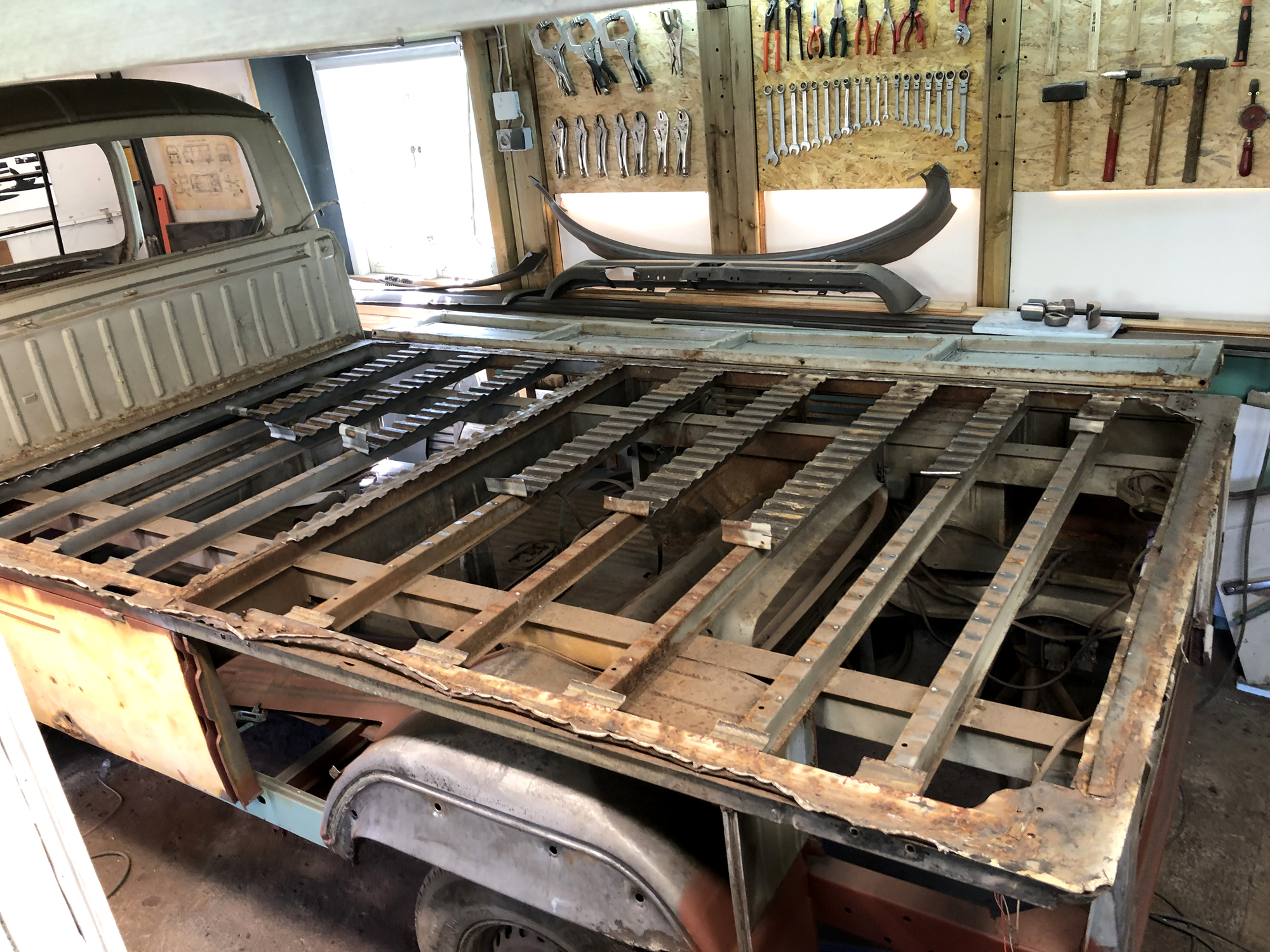Unter der Ladefläche gab es viel Rost, aber nur die seitlichen Träger waren durchrostet. Hier werde ich das Oberteil ersetzen.