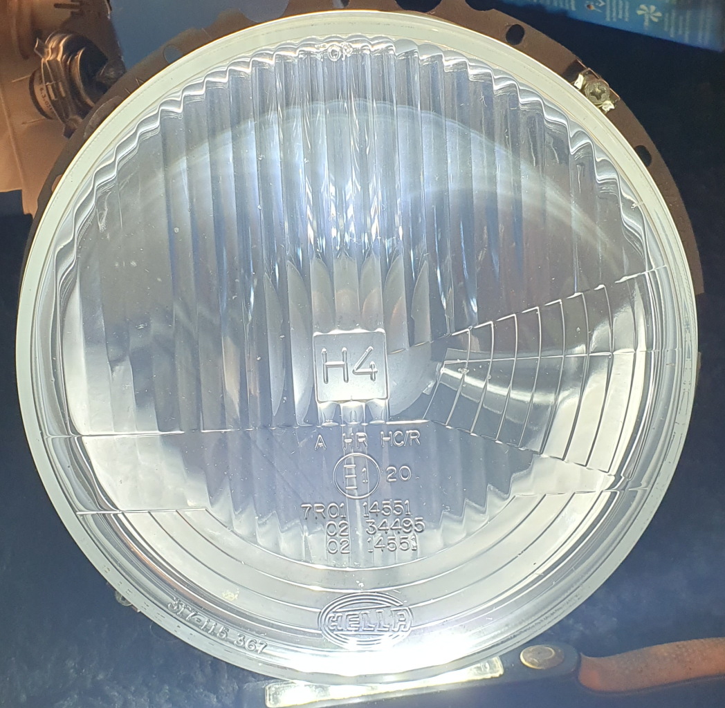 habe ich mir über Kleinanzeigen einen neuen Hella Scheinwerfer besorgt. (Da ist auch von Olaf noch ein Aufkleber drauf.)