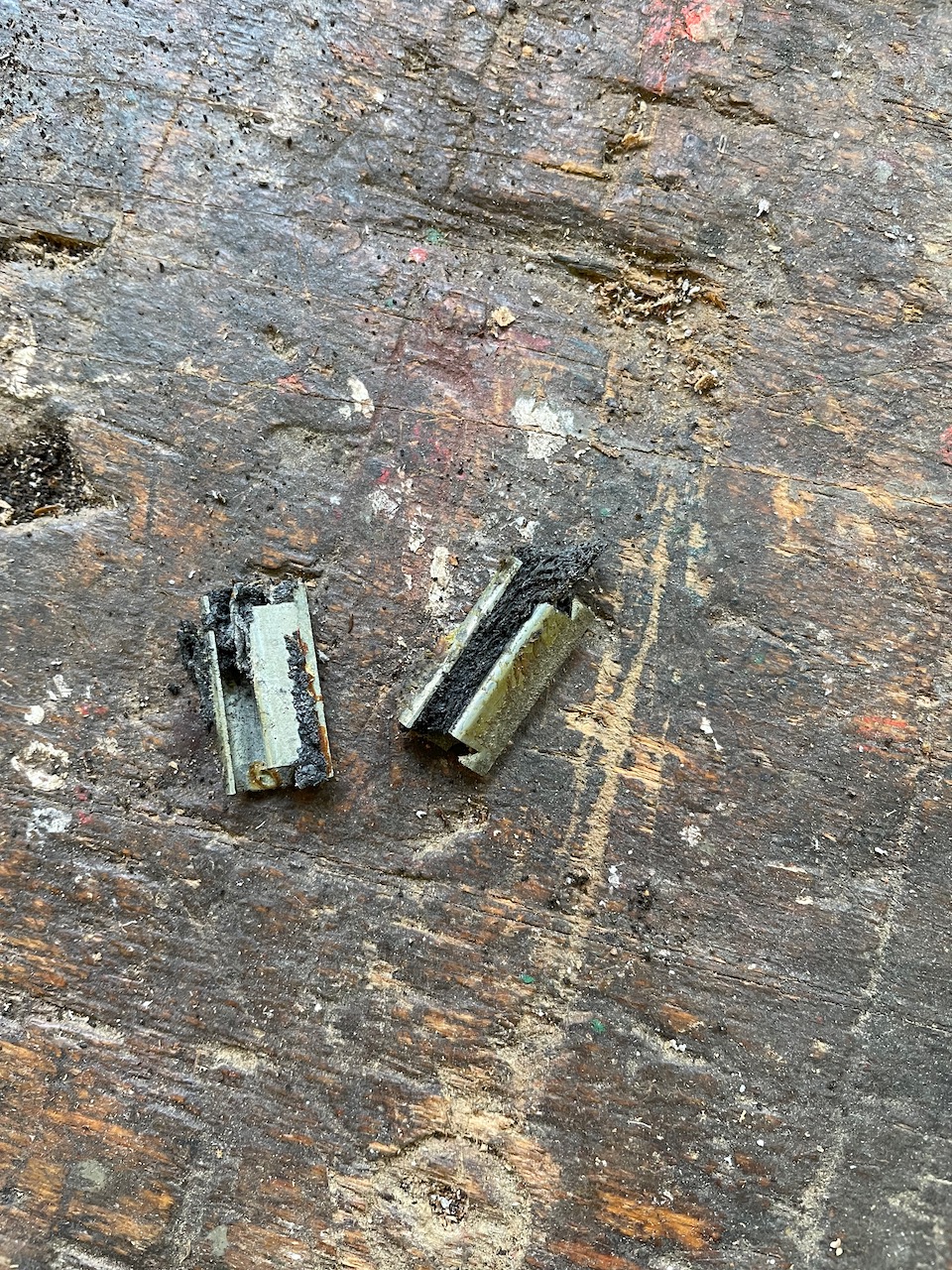 Nach dem Ausbau der Türdichtung habe ich dann diese Metallklammern entdeckt, die wahrscheinlich an der Original-- Dichtung befestigt war und die ich beim Ausbau der alten Dichtung übersehen habe.