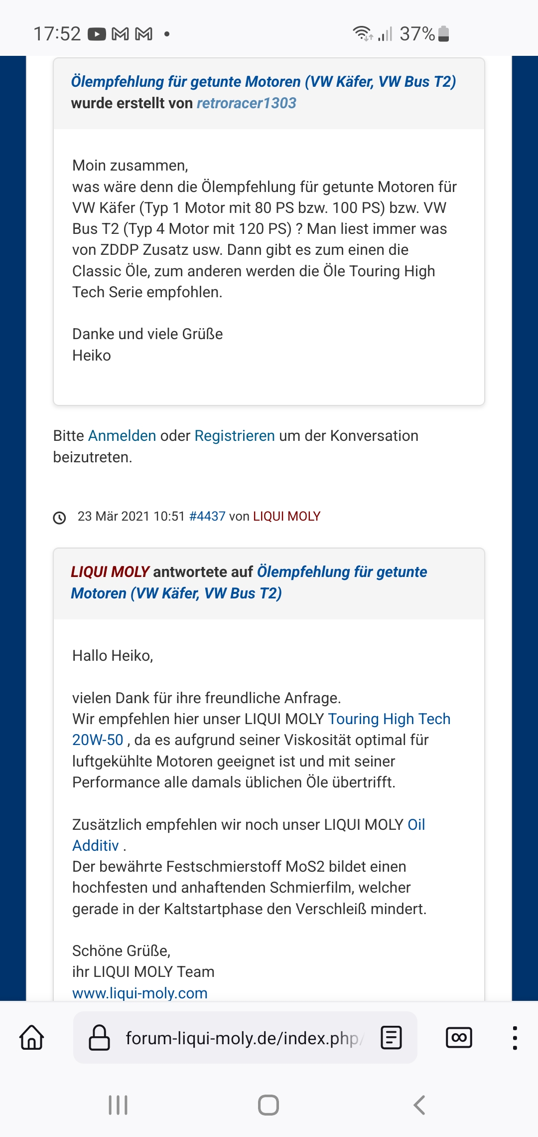 Zu guter Letzt stelle ich mir schon seit Jahren die Frage, die sich vor Allem in Foren hält, warum das vollsynthetische Öl nicht mit den alten Dichtungen können soll? Evtl. müsste ich dies unserem 54er Käfer mal sagen