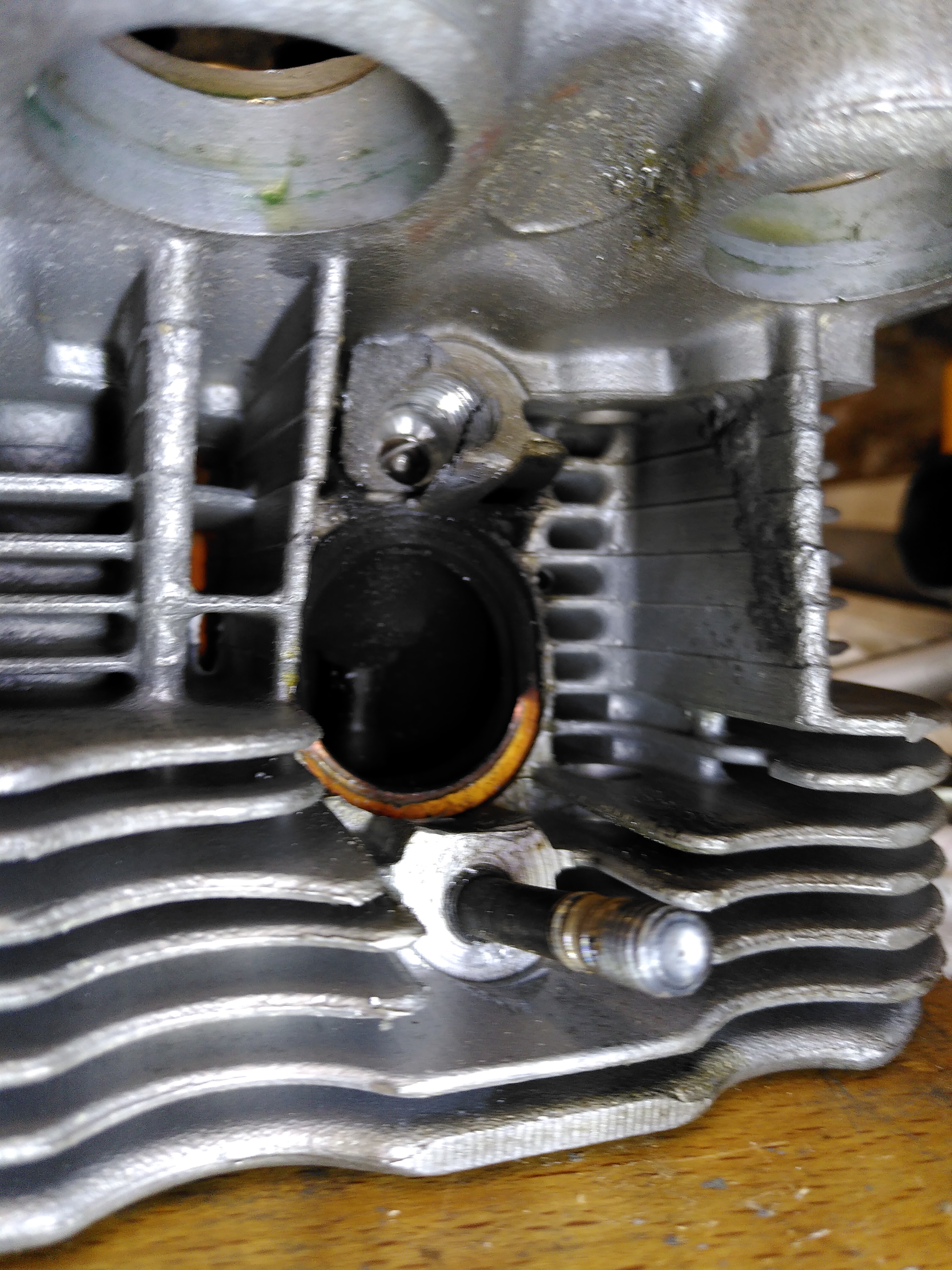 1. Als ich diesen Zylinderkopf das erste Mal runter hatte, sind mir zwei Dichtringe zwischen Zylinder und Kopf entgegengefallen. Die habe ich auch einfach wieder so verbaut, je einen pro Zylinder - es musste im Sommer ja schnell gehen, weil wir unbedingt in den Urlaub starten wollten. Gemessen hatte ich damals nichts, also könnte der ZK nicht plan aufliegen.