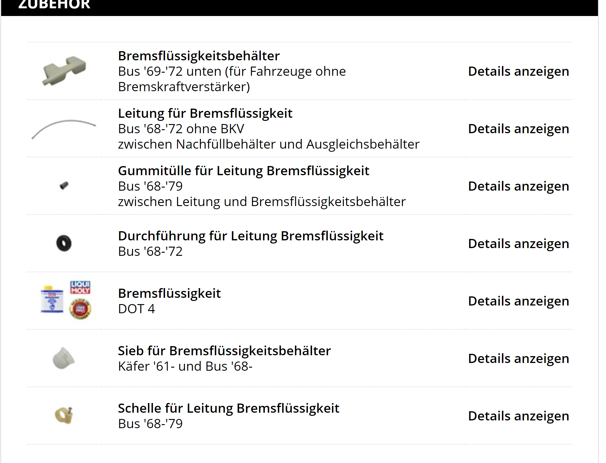 Bei CSP habe ich eine tolle Auflistung gefunden und dort auch eine passende Tülle für die Durchführung für Leitung Bremsflüssigkeit