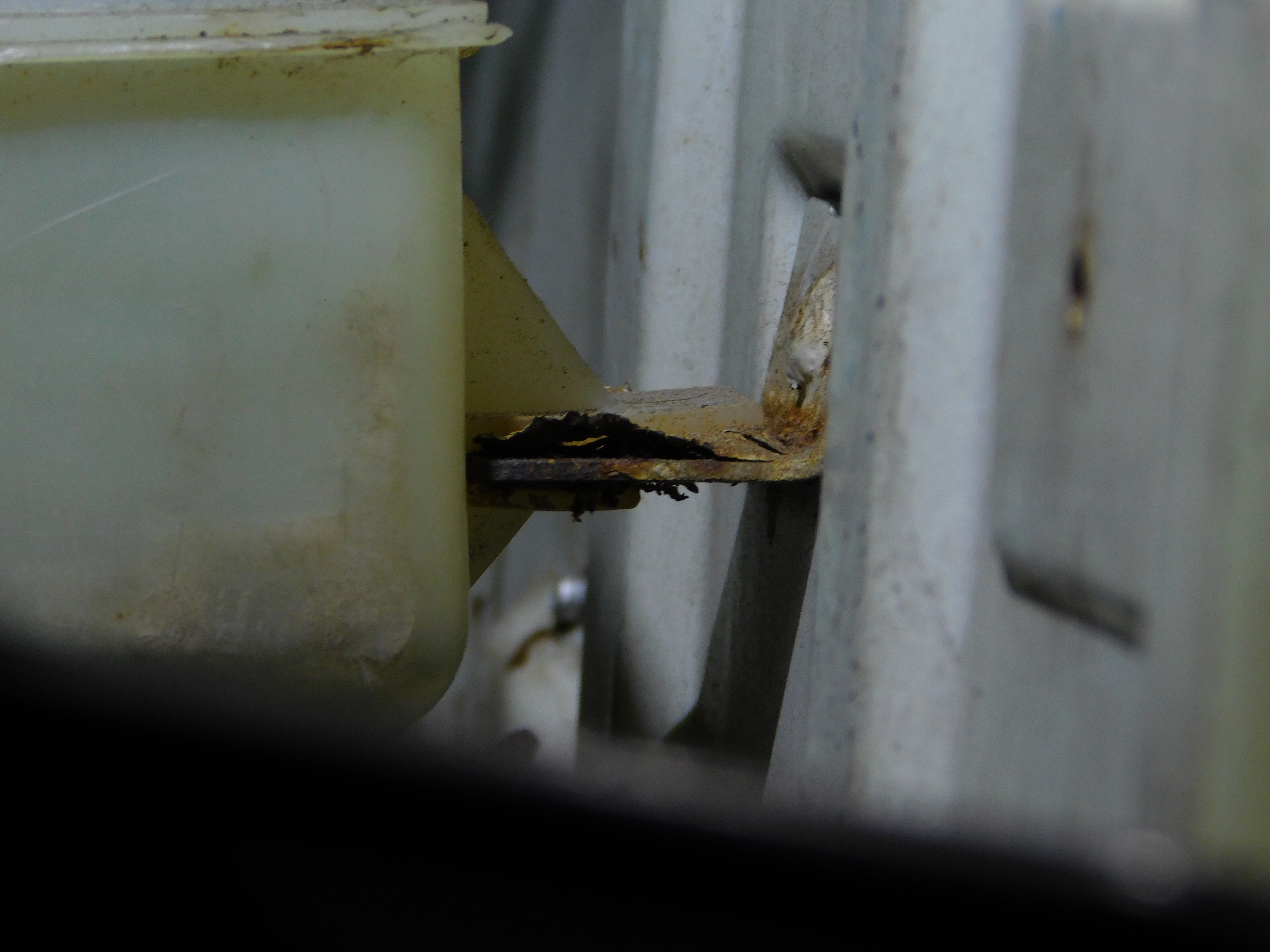 Allerdings erkennt man darauf nicht sonderlich viel, das Loch in dem Bleckwinkel gibt eben der Haltewinkel des Bremsflüssigkeitsbehälters vor.