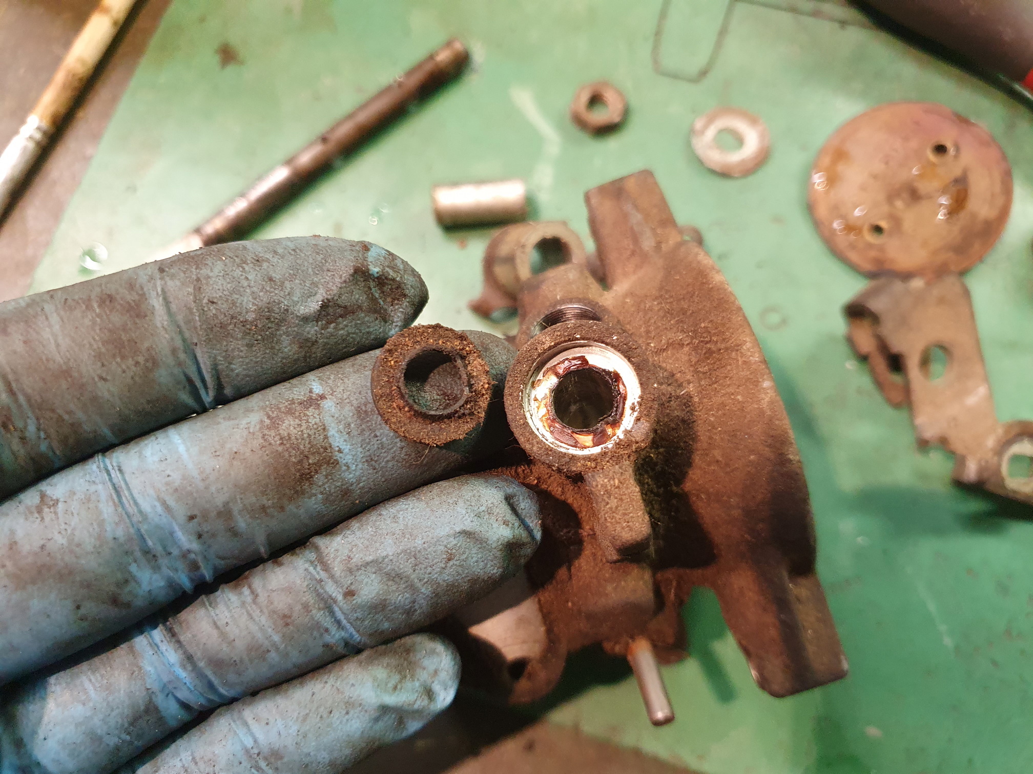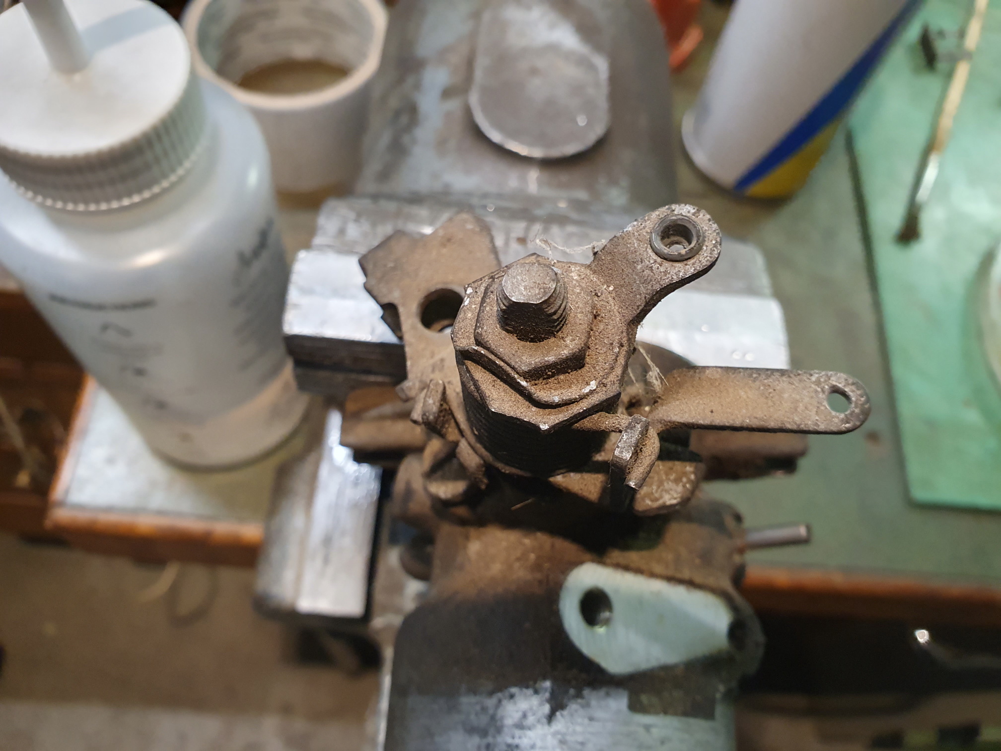 Dann geht es an die Teilereinigung. Ich nehme gerne Ofenreiniger, Pinsel und Zahnbürste.