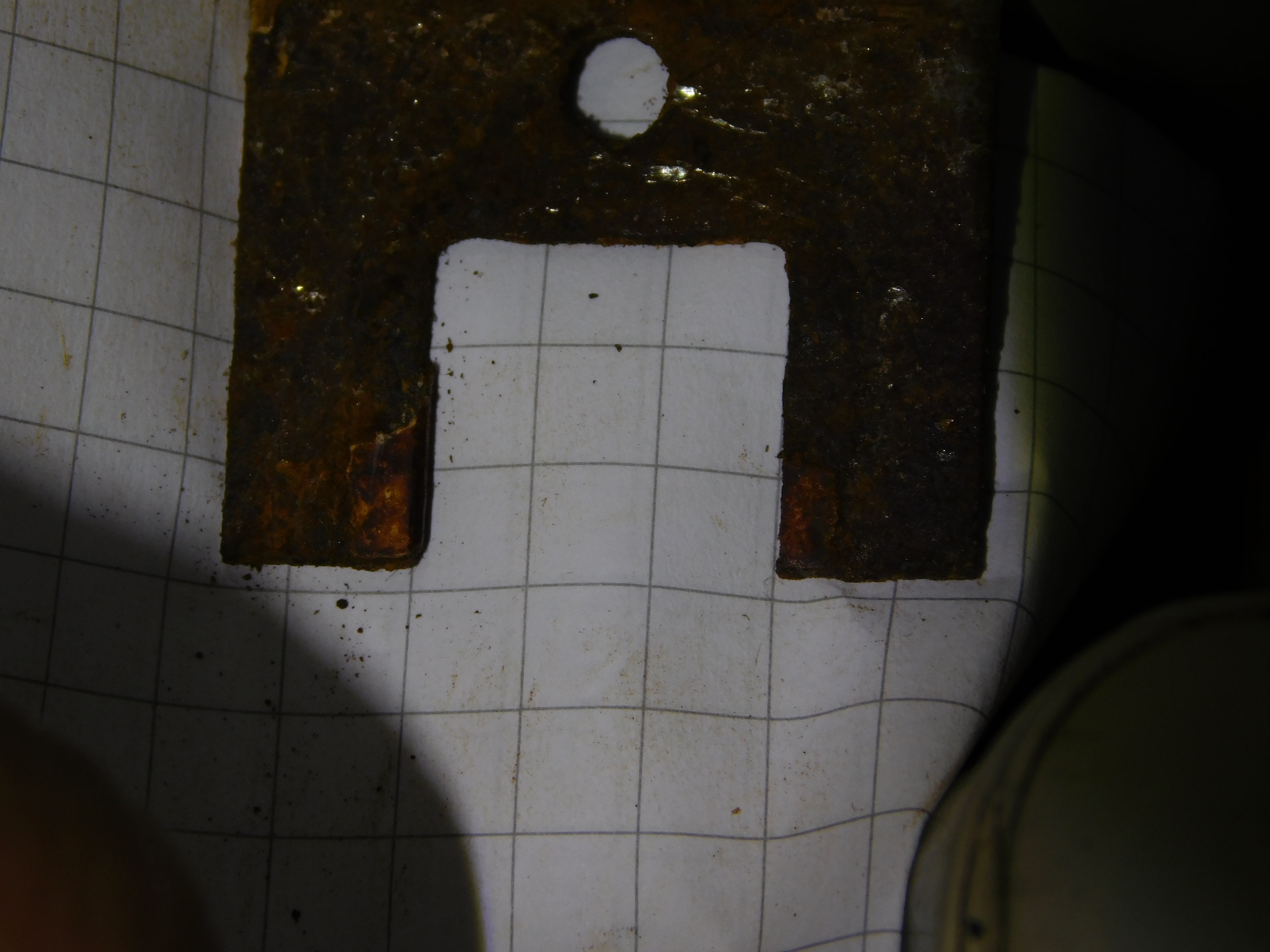 Der Blechwinkel ist komplett plan und das Karopapier hat standardmäßige 5mm Kästchen.