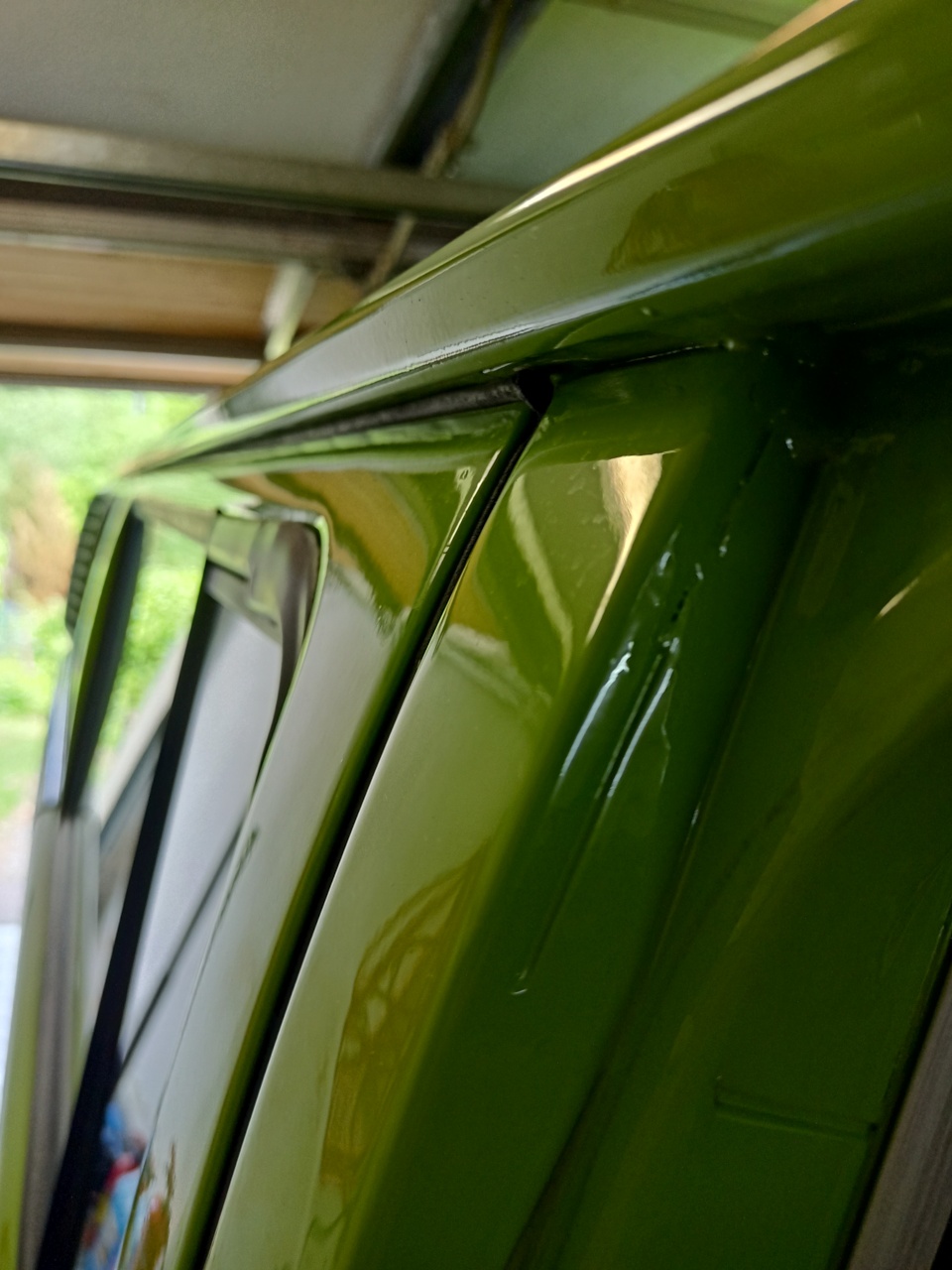 Und die Schweller sind mit Unterbodenschutz aufgespritzt und Spachtelmasse genutzt, denn da fehlen auch die Sicken (Nuten/Vertiefungen/Blechübergänge) unter den Schiebetürenden unten im Schweller. Von den Vorgängern, oder weißt Du selbst was unter der grünen Deckfarbe lauert?