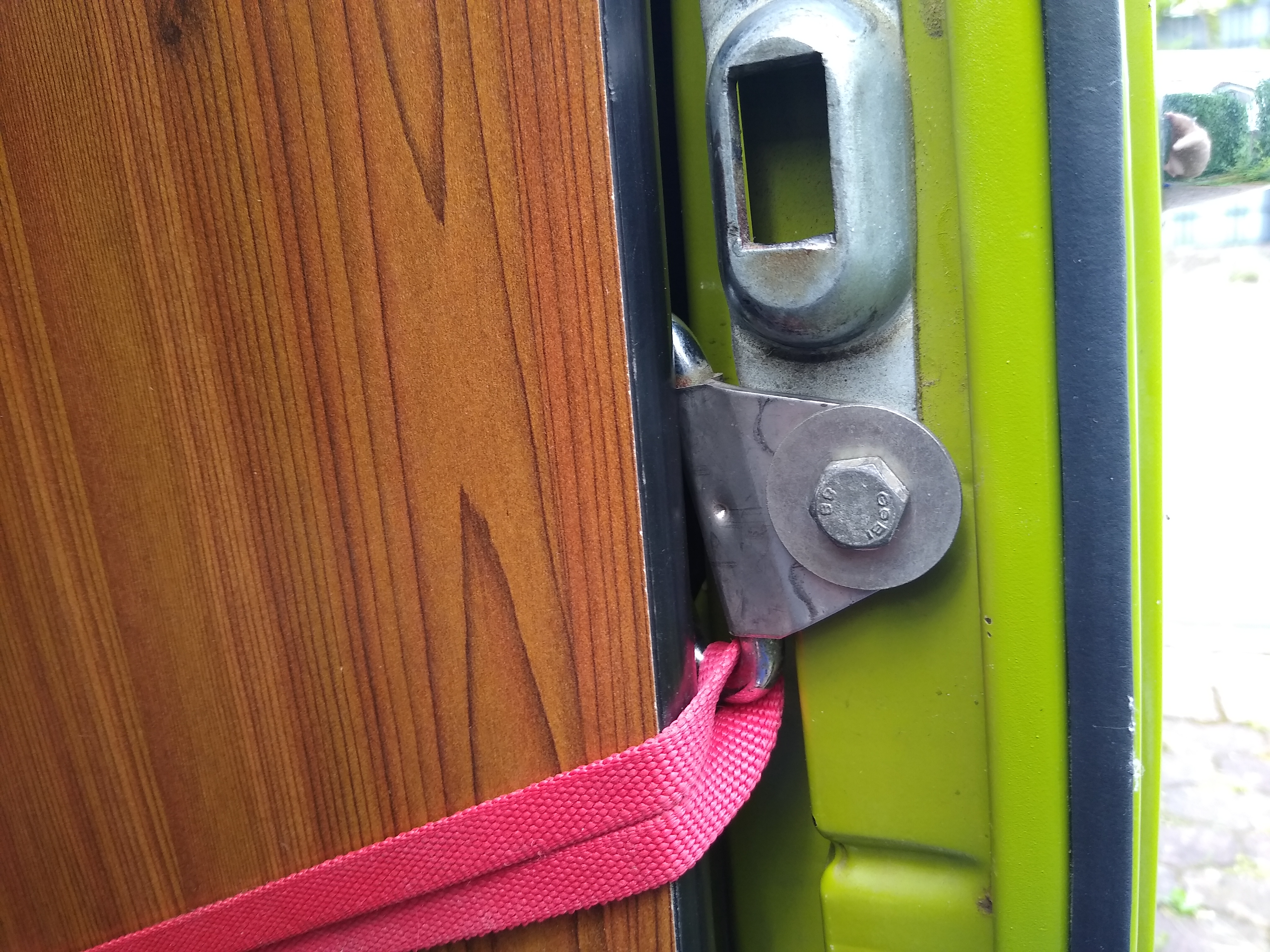 Inspiriert durch ein Video von einem Forumsmitglied heute mal meinen Tisch an seinen fortwährenden Fluchtversuchen gehindert. Wofür alte Sicherheitsgurte nicht alles gut sind.