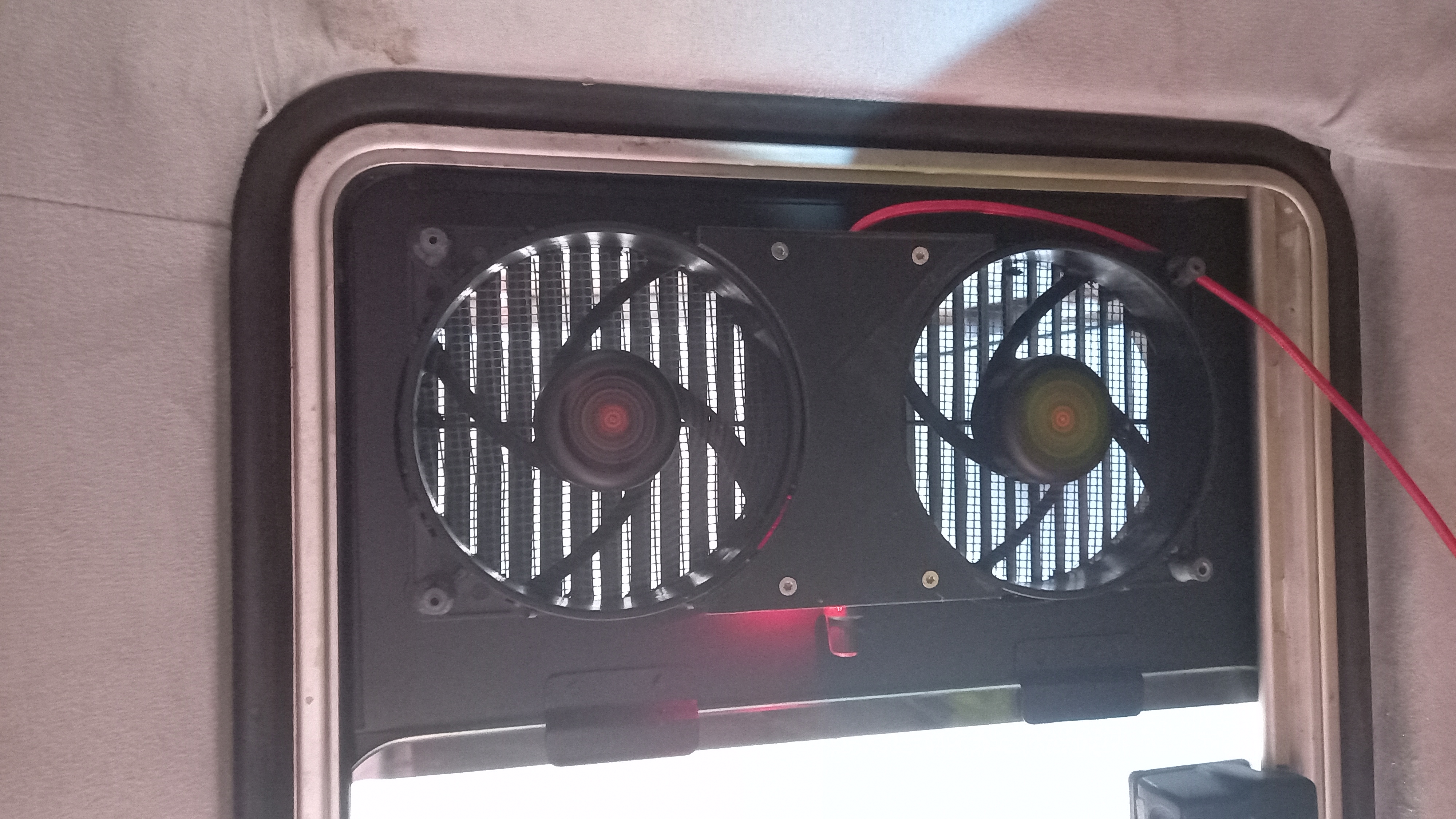 Eine Zwangsbelüftung gebaut. Wenn man im Bus schläft und die Fenster nicht wirklich auf sind dann wird es doch ganz schön feucht da drin. Und vielleicht hilft es auch bei geparktem Auto die Hitze raus zu halten