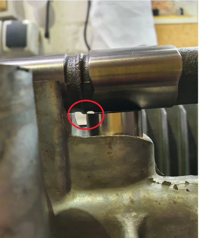 Nocke zu schroff, Anlauframpe zu kurz, das waren nur theoretische Überlegungen, die ich im nächsten Satz sofort wieder ausgeschlossen habe. Hinten funktioniert ja alles. Die 0,15 Spiel im Lager plus das Ventilspiel führen jedoch dazu, dass die Rampe quasi nicht mehr existent, weil wirkungslos ist. Da werden also die Ventiltriebsteile nicht mehr schonend in Kontakt gebracht, bevor es ordentlich Druck gibt, sondern sie kollidieren miteinander. Und wenn der Stößel gleich beim ersten Nockenwellenkontakt hochspringt, dann kollidiert er gerne noch öfters auf dem Weg zum Nockengipfel.