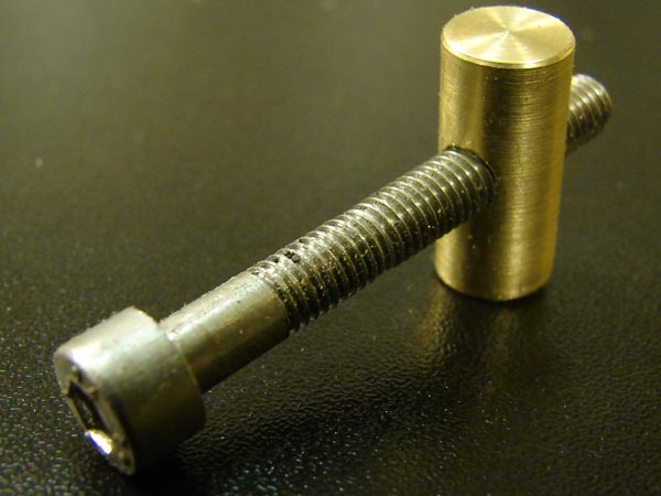 Quer in den Bolzen muss ein 4 mm Loch gebohrt und ein M5-Gewinde geschnitten werden. Fertig.