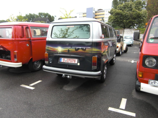 Ich war mit meinem Automatikbulli am Meilenwerk in Düsseldorf beim ersten Treffen der Pendelachsfreunde. Es waren erstaunlich viele VW´s zusehen, trotz Treffen in Geeste und schlechtem Wetter. Das erstaunlichste Fahrzeug war ein Hebmüller aus Erstbesitz (Oma/Sohne/Enkel) in gutem gebrauchtem Alltagszustand. Und dann war noch ein älterer Herr mit einem Taigagrünen 76er Selbstbaucamper (über 500.000km) im Erstbesitz der Felsenfest davon überzeugt ist das es ein 72er Baujahr in Manjokgrün (oder so) sei. Er hatte sogar eine Nummerntafel über sein Nummernschild gehängt wo Bj. 72 drauf steht. Auf die Frage ob ich mal die Fahrgestellnummer sehen dürfe antwortete er nur : Ich hab den Wagen 1972 gekauft, basta."
