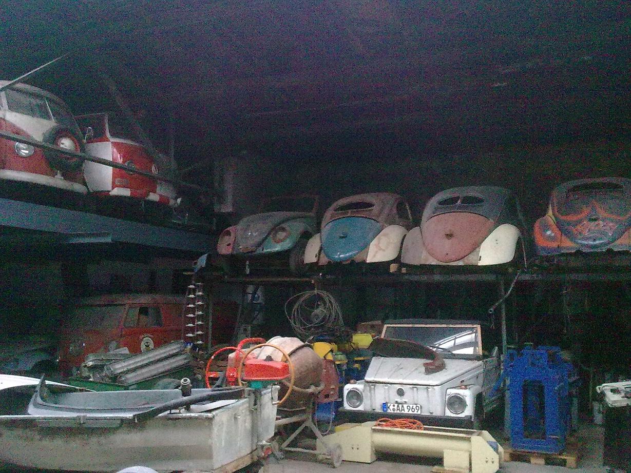 Die Halle ist echt abgefahren. Dachte schon, die Ludolfs haben aufgeräumt und unter Bergen von Relais, Blinkern, Endtöpfen etc. nebenbei ein paar Luftgekühlte gefunden