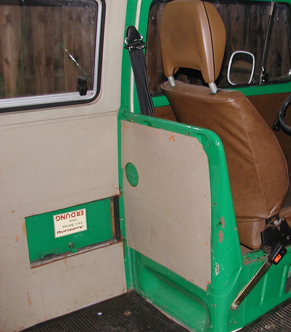 Die große Klappe an der Seite diente dazu, eine Kabeltrommel durch zu reichen. Bei externer Stromversorgung war dann hinten ein Erdungsanker anzubringen, damit (bei einem ungewollten Kontakt von Litze und Karosse) niemand gegrillt wird.