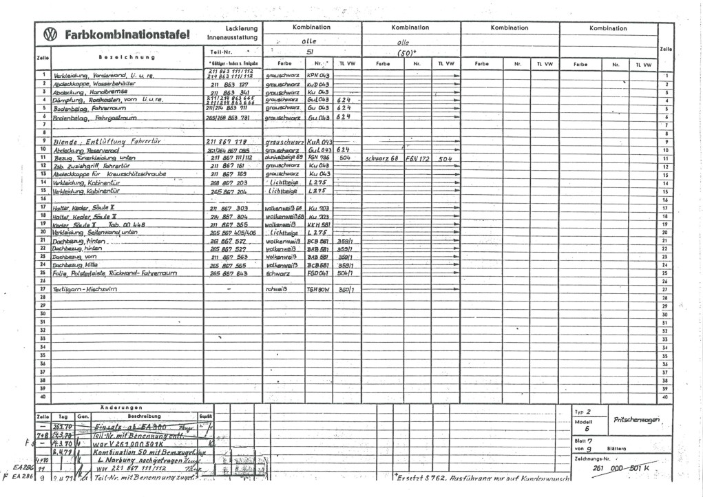 Bei den früheren T2a-Modellen war meines Wissens das Armaturenbrett doch immer in Wagenfarbe lackiert - oder irre ich mich da?