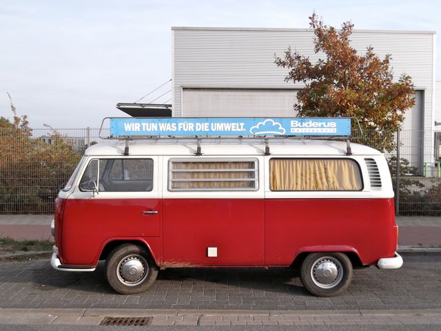 Heute Nachmittag entdeckt bei der neuen Skaterbahn in der Bremer Überseestadt. Ein T2a/b Zwitter von 1972 mit Westfalia Einbauten. Und bei der Gelegenheit auch gleich den Fahrer kennengelernt. Der hat trotz der Werbung am Dachträger nix mit Heizungen zu tun....