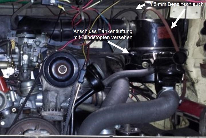 Ist sinnvoll das so zu machen, man könnte aber auch upgraden und den Schlauch bis zum bezeichneten Anschluss vom Luftfilter führen. Dann muss man aber die Leitung in einem Bogen in Höhe des Einfüllstutzens verlegen.